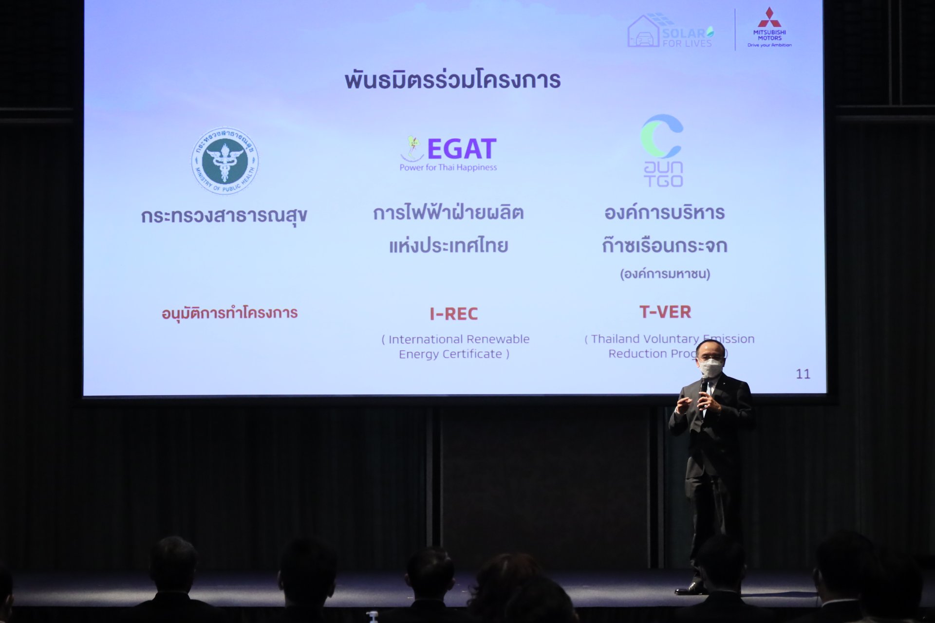 บริษัท มิตซูบิชิ มอเตอร์ส (ประเทศไทย) จำกัด ได้จัดพิธีลงนามบันทึกข้อตกลงความร่วมมือ (MoU) กับกระทรวงสาธารณสุข การไฟฟ้าฝ่ายผลิตแห่งประเทศไทย (กฟผ.) และองค์การบริหารจัดการก๊าซเรือนกระจก (องค์การมหาชน) (อบก.) เพื่อริเริ่มโครงการด้านสิ่งแวดล้อม “Solar for Lives: พลังงานแสงอาทิตย์เพื่อชีวิตที่ดีกว่า” โดย มิตซูบิชิ มอเตอร์ส ประเทศไทย จะทำหน้าที่ในการติดตั้งระบบ แผงพลังงานแสงอาทิตย์ หรือ แผงโซลาร์ เพื่อช่วยผลิตพลังงานไฟฟ้าให้แก่โรงพยาบาลชุมชนต่างๆ ในพื้นที่ ทั่วประเทศ