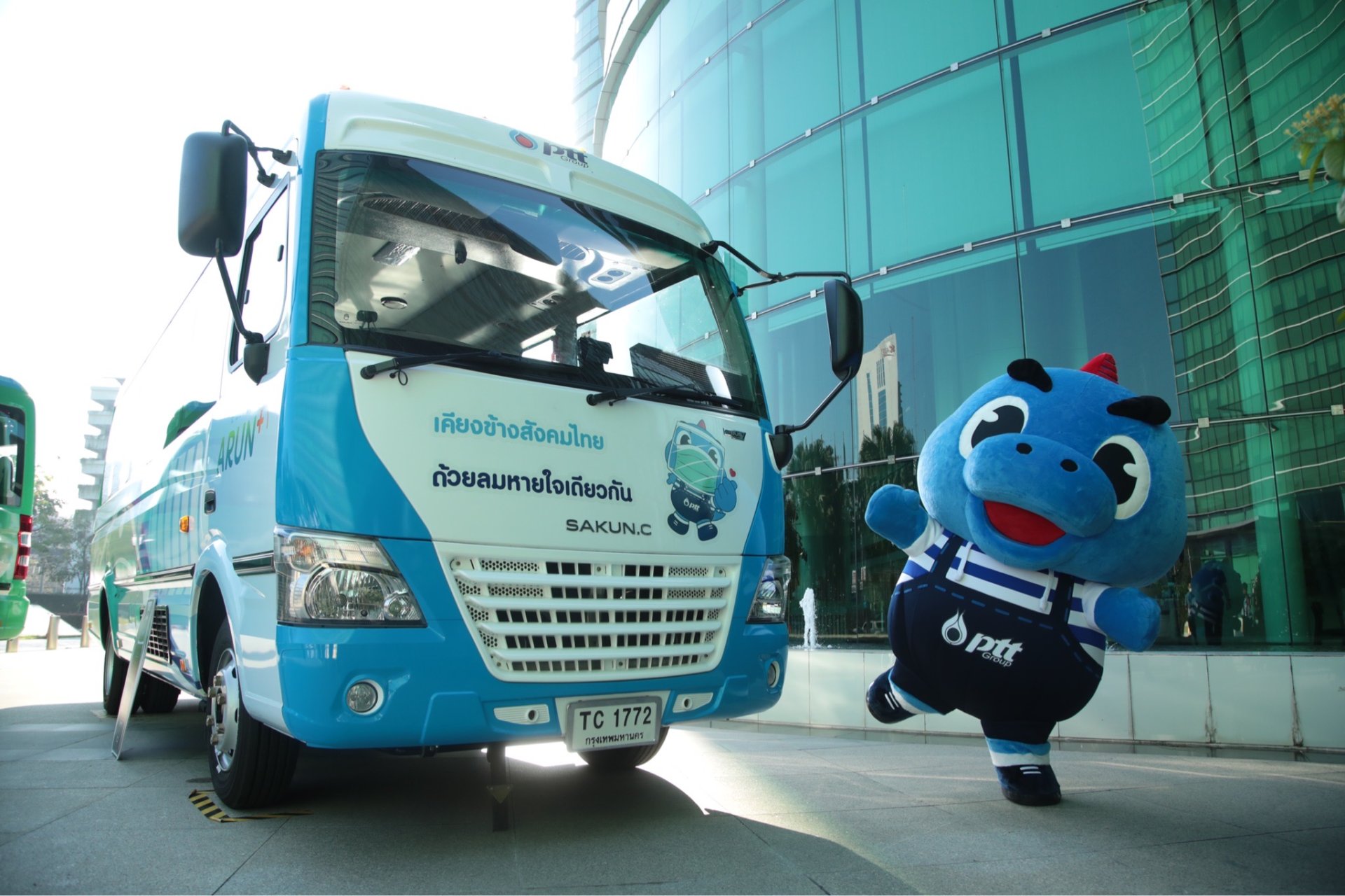 นายอรรถพล ฤกษ์พิบูลย์ ประธานเจ้าหน้าที่บริหารและกรรมการผู้จัดการใหญ่ บริษัท ปตท. จำกัด (มหาชน) (ปตท.) นายศิรศักดิ์ จันเทรมะ กรรมการผู้จัดการใหญ่ บริษัท เอนเนอร์ยี่ คอมเพล็กซ์ จำกัด (EnCo) พร้อมด้วย นายเอกชัย ยิ้มสกุล กรรมการผู้จัดการ บริษัท อรุณ พลัส จำกัด (ARUN PLUS) ร่วมเปิดตัวและส่งมอบ “E-Bus” รถโดยสารพลังงานไฟฟ้าประสิทธิภาพสูงที่ผลิตขึ้นใหม่ในประเทศ เพื่ออำนวยความสะดวกในการรับส่งพนักงานในกลุ่ม ปตท. บุคลากรกระทรวงพลังงาน และประชาชนทั่วไปที่มาติดต่องาน