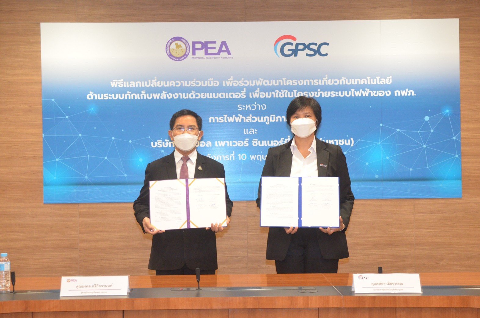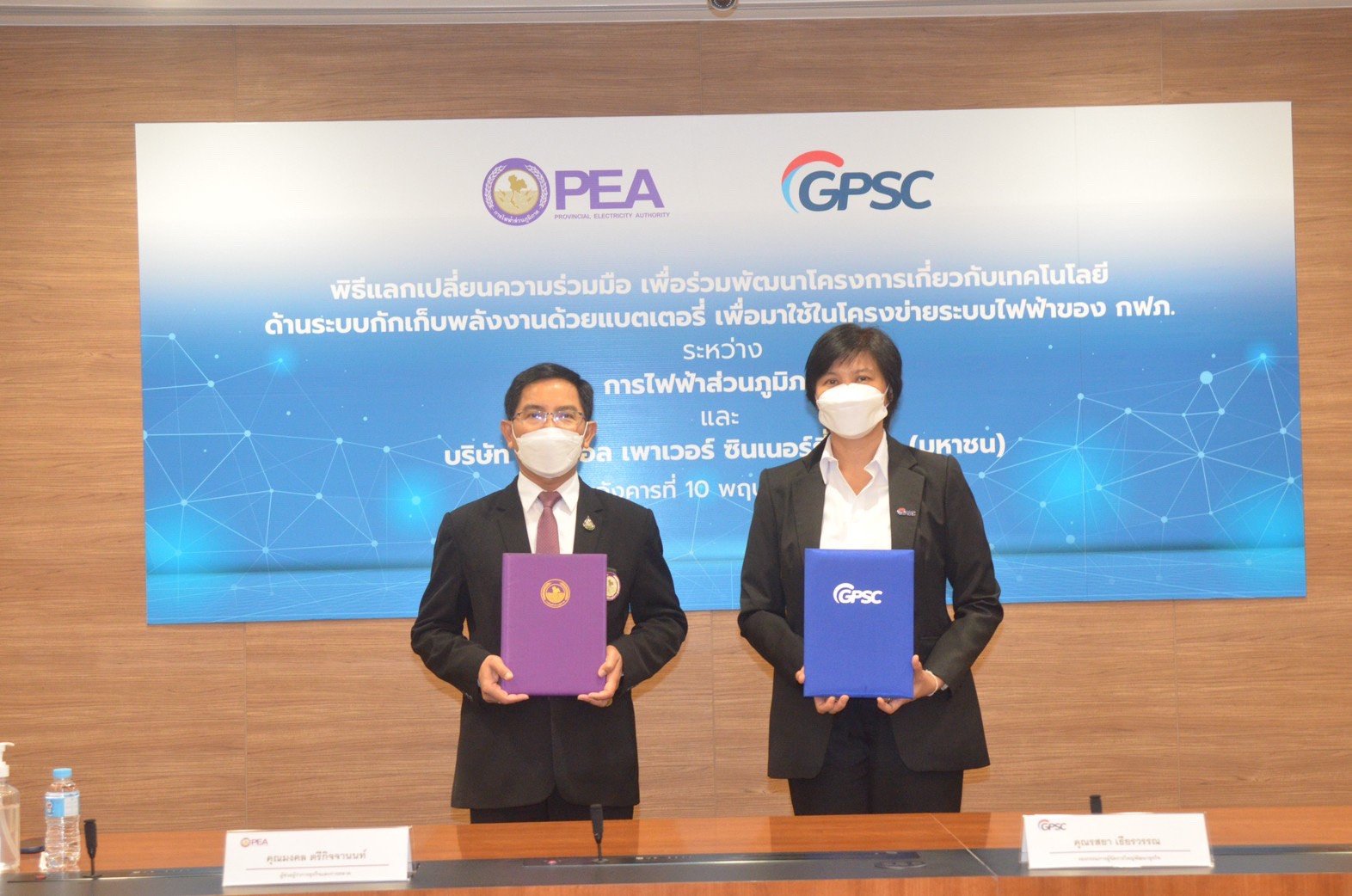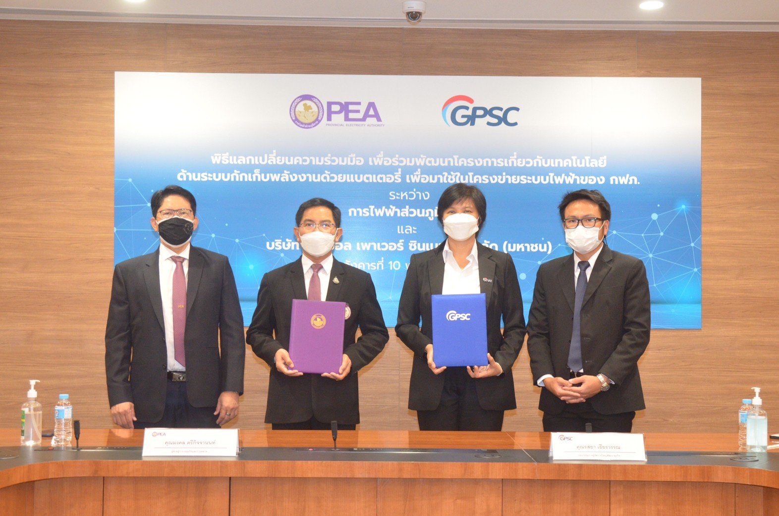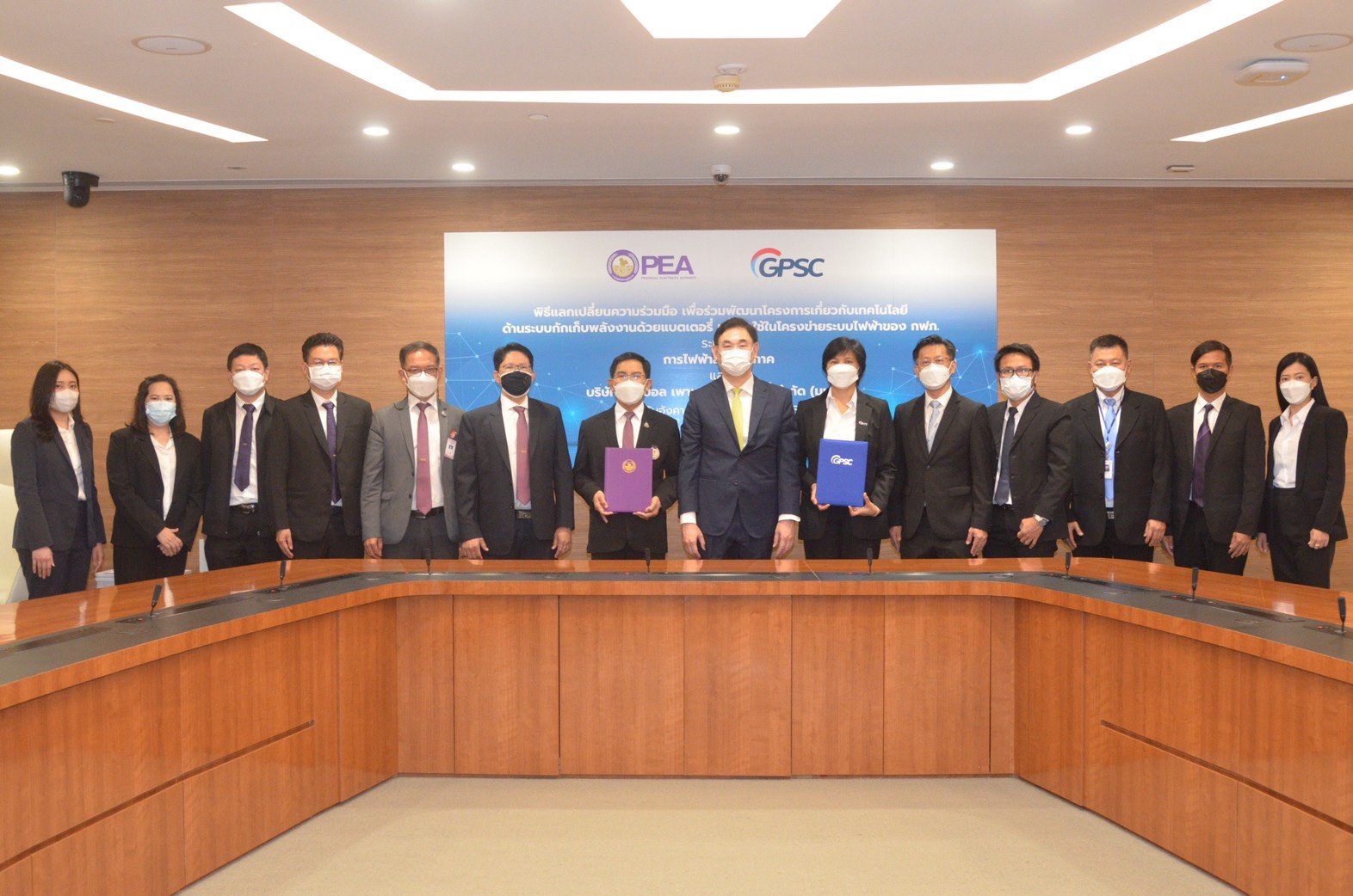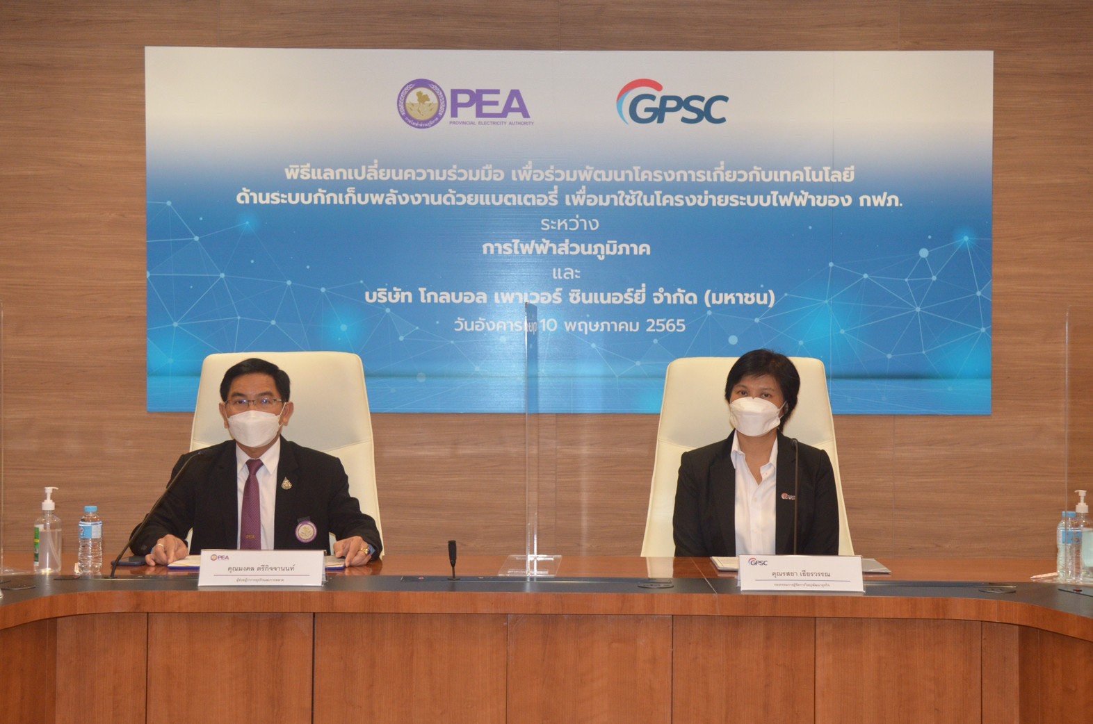 PEA ร่วมมือ GPSC แลกเปลี่ยนความร่วมมือเพื่อพัฒนาโครงการเกี่ยวกับเทคโนโลยีด้านระบบกักเก็บพลังงานด้วยแบตเตอรี่ เพื่อมาใช้ในโครงข่ายระบบไฟฟ้าของ PEA