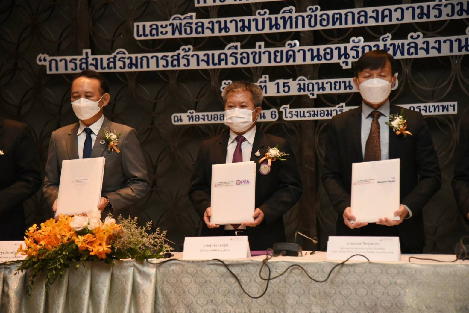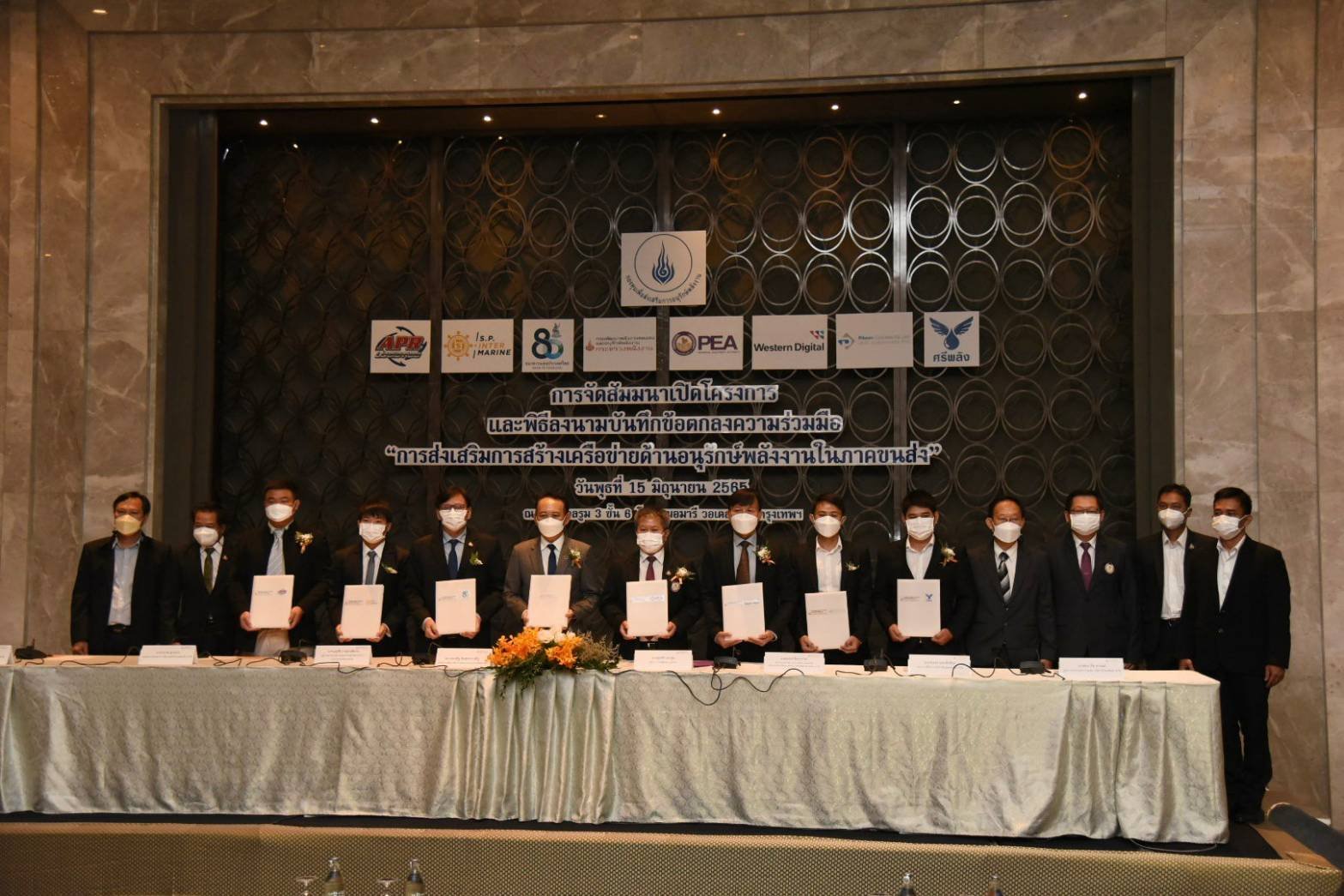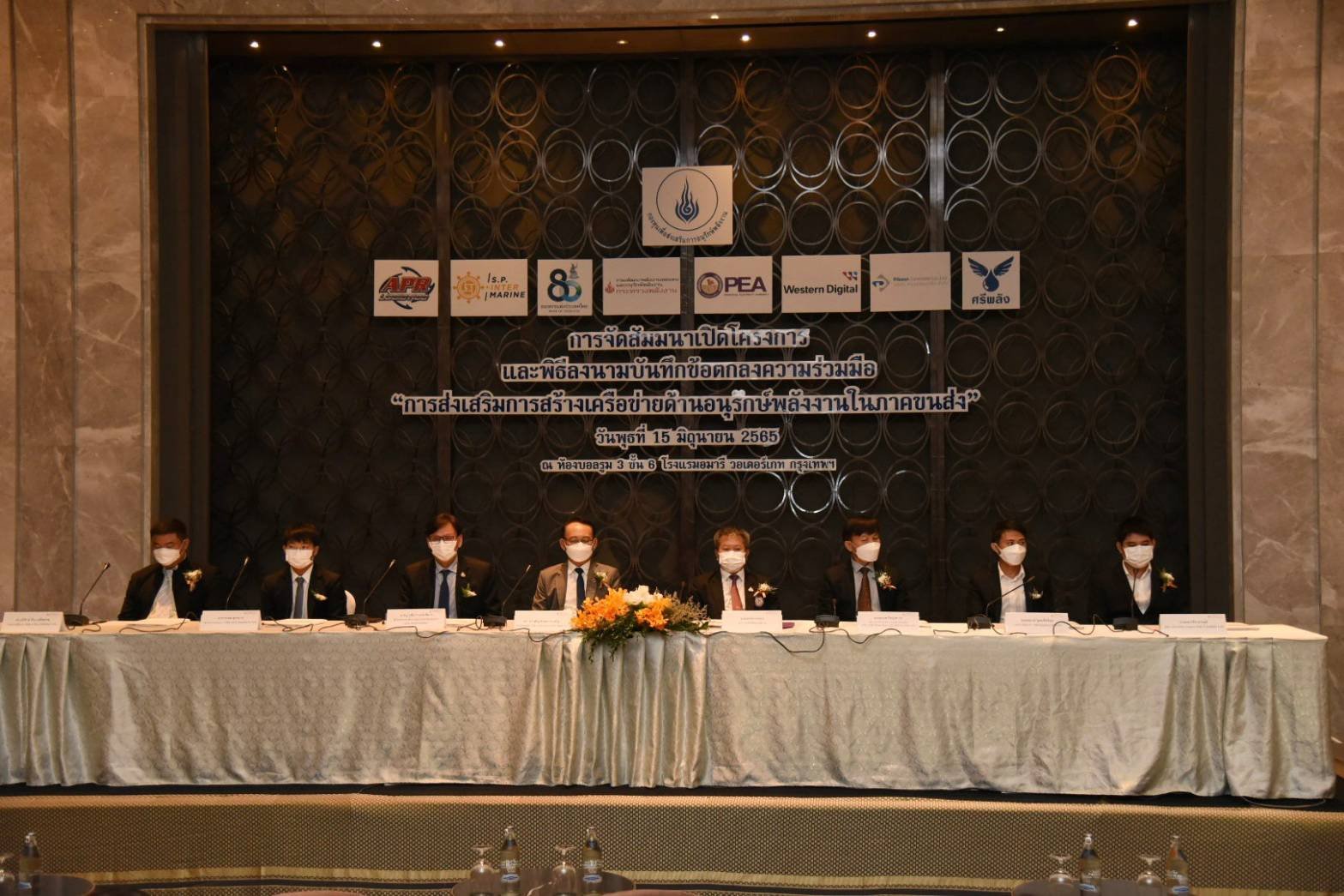 นายศุภชัย เอกอุ่น ผู้ว่าการการไฟฟ้าส่วนภูมิภาค และนายประเสริฐ สินสุขประเสริฐ อธิบดีกรมพัฒนาพลังงานทดแทนและอนุรักษ์พลังงาน ร่วมลงนามบันทึกข้อตกลงความร่วมมือ “การส่งเสริมการสร้างเครือข่ายด้านอนุรักษ์พลังงานในภาคขนส่ง” พร้อมกับ หน่วยงานที่ได้รับการคัดเลือกเข้าร่วมโครงการ 6 หน่วยงาน ณ ห้องบอลรูม 3 ชั้น 6 โรงแรมอมารี วอเตอร์เกท กรุงเทพฯ
