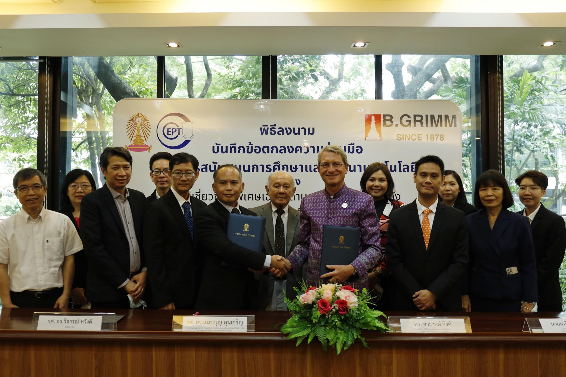 ดร. ฮาราลด์ ลิงค์ ประธาน บี.กริม และประธานเจ้าหน้าที่บริหาร บริษัท บี.กริม เพาเวอร์ จำกัด (มหาชน) ร่วมลงนามบันทึกข้อตกลงความร่วมมือทางวิชาการกับ รศ.ดร. แนบบุญ หุนเจริญ รักษาการแทนผู้อำนวยการศูนย์เชี่ยวชาญฯ/หัวหน้าภาควิชาวิศวกรรมไฟฟ้า คณะวิศวกรรมศาสตร์ จุฬาลงกรณ์มหาวิทยาลัย เพื่อร่วมกันศึกษาความเป็นไปได้ในการพัฒนาองค์ความรู้ด้านอุตสาหกรรมการผลิตกระแสไฟฟ้าและพลังงานสะอาด ตลอดจนการพัฒนาและประยุกต์ใช้เทคโนโลยีในกระบวนการผลิต พร้อมพัฒนาบุคลากรอย่างมีศักยภาพนำไปสู่การถ่ายทอดความรู้และแลกเปลี่ยนประสบการณ์ด้านเทคโนโลยีและนวัตกรรม เพื่อส่งเสริมการใช้ทรัพยากรร่วมกันให้เกิดประโยชน์สูงสุด สร้างความมั่นคงด้านพลังงานอย่างยั่งยืนต่อไป จัดขึ้น ณ ห้องประชุมสวนรวมใจ 2 อาคาร 3 คณะวิศวกรรมศาสตร์ จุฬาลงกรณ์มหาวิทยาลัย
