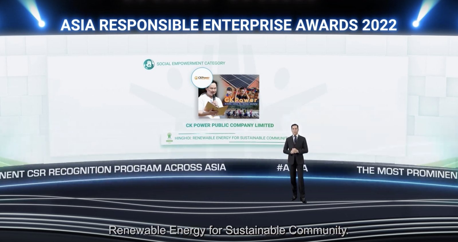 นายธนวัฒน์ ตรีวิศวเวทย์ กรรมการผู้จัดการ บริษัท ซีเค พาวเวอร์ จำกัด (มหาชน) กล่าวว่า “CKPower เราเป็นหนึ่งในผู้ผลิตไฟฟ้าจากพลังงานหมุนเวียนที่ใหญ่ที่สุดในภูมิภาค และมีคาร์บอนฟุตพริ้นท์ ต่ำที่สุดรายหนึ่ง เราให้ความสำคัญและมุ่งมั่นในการพัฒนาอย่างยั่งยืน ทั้งในส่วนขององค์กรเราเอง และสังคม ผ่าน โครงการหิ่งห้อย กิจกรรมเพื่อสังคมหลักของ CKPower ซึ่งเกิดจากการที่เราได้เข้าไปสำรวจลักษณะและความต้องการของชุมชนในพื้นที่โดยรอบโรงไฟฟ้าและพื้นที่ห่างไกล ในด้านสาธารณูปโภคขั้นพื้นฐาน ได้แก่ น้ำและไฟฟ้า รวมถึงด้านการศึกษาที่ต้องการให้เด็กและเยาวชน ได้เข้าถึงการศึกษาขั้นพื้นฐานอย่างเท่าเทียม และมีสภาพแวดล้อมที่เอื้อต่อการเรียนรู้ รางวัล Asia Responsible Enterprise Awards 2022 (AREA 2022) ด้าน Social Empowerment (การสร้างความเข้มแข็งในสังคม) ที่ CKPower ได้รับนั้น เป็นกำลังใจสำคัญให้เรายิ่งทุ่มเทตั้งใจในการดำเนินธุรกิจด้วยความรับผิดชอบต่อสังคม ควบคู่ไปกับการให้ความสำคัญต่อสิ่งแวดล้อม สอดคล้องกับวิถีชุมชน ความสำเร็จนี้มาจากการสนับสนุนของพันธมิตร และชุมชนต่างๆ รวมถึงจิตอาสาของ CKPower ทุกคนที่ได้ร่วมแรงกาย แรงใจและ พลังสมองในการดำเนินโครงการหิ่งห้อยจนกระทั่งเกิดผลสัมฤทธิ์อย่างยั่งยืนเป็นรูปธรรม และได้รับการเชิดชูเกียรติในครั้งนี้”