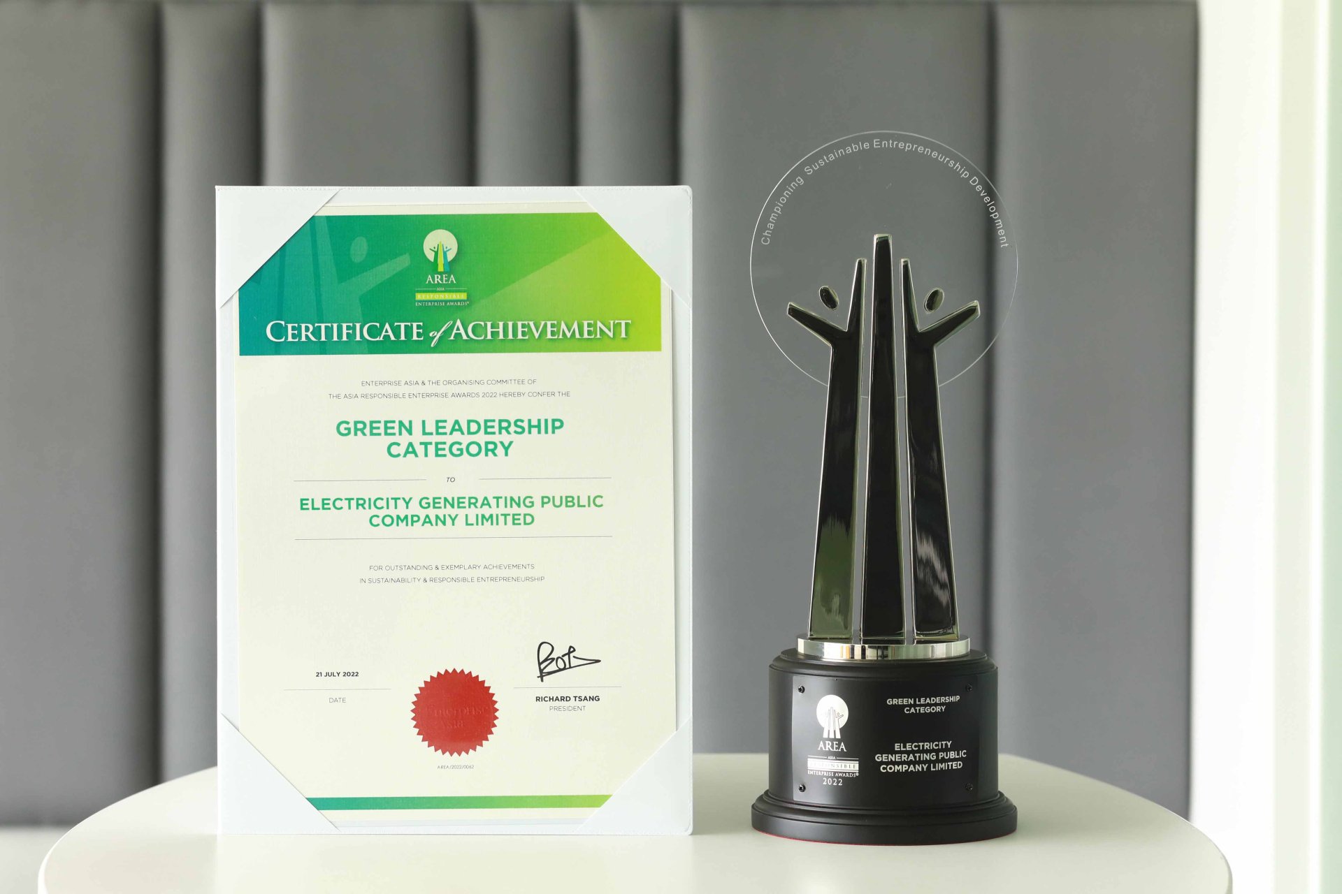 บริษัท ผลิตไฟฟ้า จำกัด (มหาชน) หรือ เอ็กโก กรุ๊ป นำโครงการจัดการขยะภายในองค์กร “EGCO Ecosystem” คว้ารางวัล “Asia Responsible Enterprise Awards 2022” (AREA 2022) ต่อเนื่องปีที่ 2 สาขา Green Leadership จากสถาบัน Enterprise Asia องค์กรพัฒนาเอกชนชั้นนำที่ส่งเสริมศักยภาพผู้ประกอบการที่มีความรับผิดชอบต่อสังคมและสิ่งแวดล้อมในภูมิภาคเอเชีย สะท้อนการยอมรับในระดับภูมิภาคต่อการดำเนินธุรกิจตามแนวทางการพัฒนาอย่างยั่งยืน ด้วยความใส่ใจต่อสิ่งแวดล้อมและการมุ่งสู่สังคมคาร์บอนต่ำของเอ็กโก กรุ๊ป
