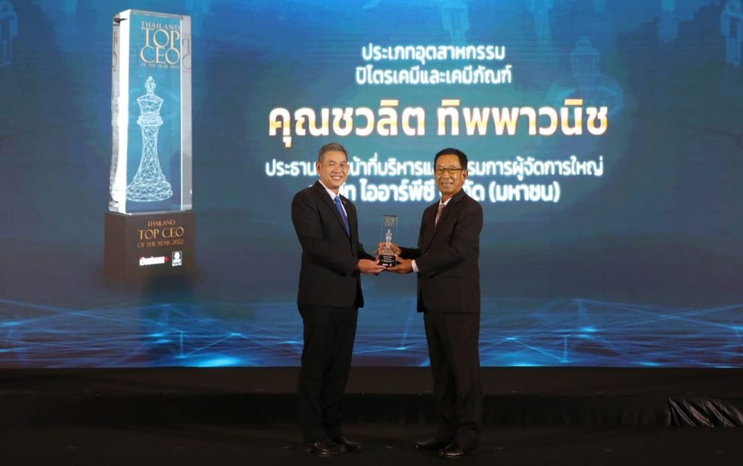 คุณชวลิต ทิพพาวนิช ประธานเจ้าหน้าที่บริหารและกรรมการผู้จัดการใหญ่ บริษัท ไออาร์พีซี จำกัด (มหาชน) หรือ IRPC รับมอบรางวัลสุดยอดผู้นำองค์กรแห่งปีหรือ THAILAND TOP CEO OF THE YEAR 2022 ประเภทอุตสาหกรรมปิโตรเคมีและเคมีภัณฑ์ จาก ฯพณฯ นุรักษ์ มาประณีต องคมนตรี ประธานในพิธีมอบรางวัล ซึ่งจัดโดย นิตยสาร BUSINESS PLUS