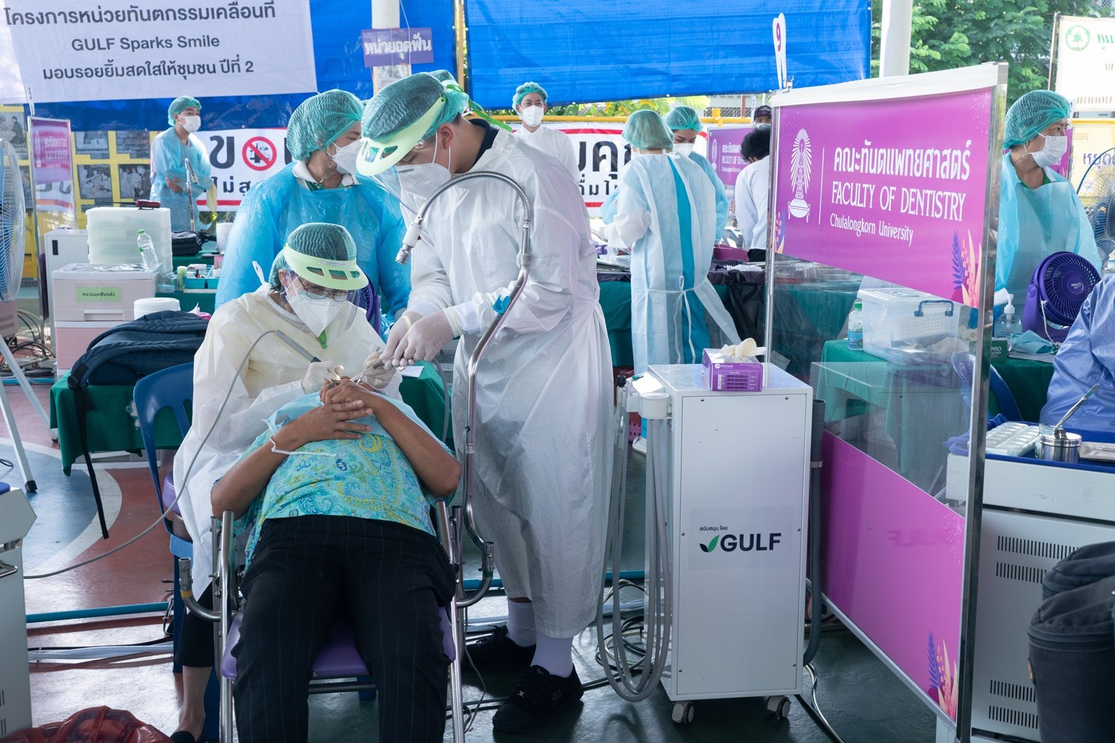 ในปี 2565 นี้ กัลฟ์ และ คณะทันตแพทยศาสตร์ จุฬาฯ ได้สานต่อโครงการออกหน่วยทันตกรรมเคลื่อนที่ “GULF Sparks Smiles มอบรอยยิ้มสดใสให้ชุมชน” เป็นปีที่ 2 เพื่อขยายขอบเขตโครงการฯ ไปยังพื้นที่อื่นๆ ได้แก่ เขตบางขุนเทียน เขตหนองจอก และ เขตลาดกระบัง เพื่อให้การรักษาครอบคลุมไปยังชุมชนที่ต้องการความช่วยเหลือเพิ่มมากขึ้น โดยการออกหน่วยทันตกรรมเคลื่อนที่จะให้บริการตรวจรักษาปัญหาสุขภาพช่องปากในเบื้องต้น อาทิ อุดฟัน ถอนฟัน ขูดหินปูน เคลือบฟลูออไรด์ และเอ็กซเรย์ รวมไปถึงทันตกรรมที่ซับซ้อนอย่างการผ่าฟันคุด ซึ่งจะสามารถให้บริการผู้ป่วยได้ 150-200 คน/วัน