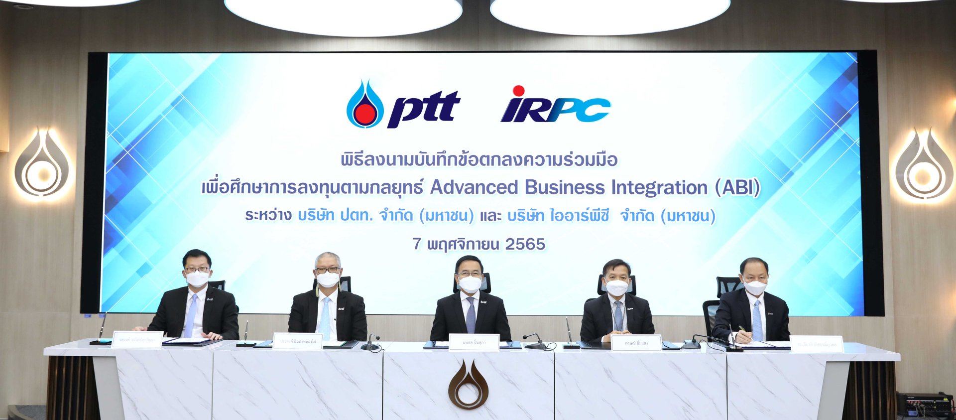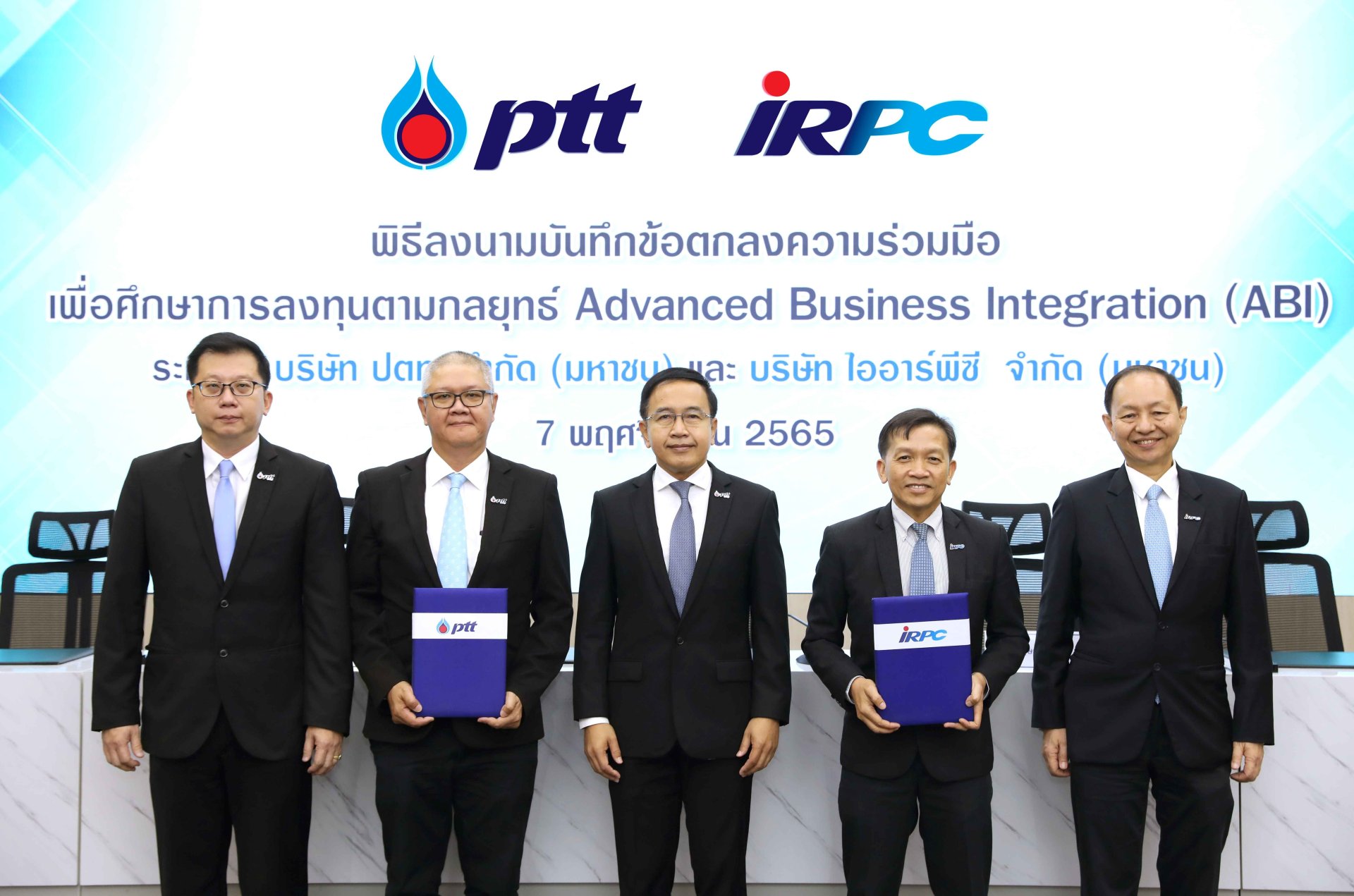 นายนพดล ปิ่นสุภา ประธานเจ้าหน้าที่ปฏิบัติการกลุ่มธุรกิจปิโตรเลียมขั้นปลาย บริษัท ปตท. จำกัด (มหาชน) เป็นประธานในพิธีลงนามบันทึกข้อตกลงความร่วมมือเพื่อศึกษาการลงทุนตามกลยุทธ์ Advanced Business Integration (ABI) ระหว่าง บริษัท ปตท. จำกัด (มหาชน) และ บริษัท ไออาร์พีซี จำกัด (มหาชน) โดยนายประสงค์ อินทรหนองไผ่ รองกรรมการผู้จัดการใหญ่บริหารกลยุทธ์กลุ่มธุรกิจปิโตรเลียมขั้นปลาย บริษัท ปตท. จำกัด (มหาชน) และนายกฤษณ์ อิ่มแสง ประธานเจ้าหน้าที่บริหารและกรรมการผู้จัดการใหญ่ บริษัท ไออาร์พีซี จำกัด (มหาชน) พร้อมด้วย นายจตุรงค์ วรวิทย์สุรวัฒนา ผู้ช่วยกรรมการผู้จัดการใหญ่แผนกลุ่มธุรกิจปิโตรเลียมขั้นปลาย บริษัท ปตท. จำกัด (มหาชน) และนายสมเกียรติ เลิศฤทธิ์ภูวดล รองกรรมการผู้จัดการใหญ่ สายกลยุทธ์องค์กร บริษัท ไออาร์พีซี จำกัด (มหาชน) ร่วมเป็นสักขีพยาน