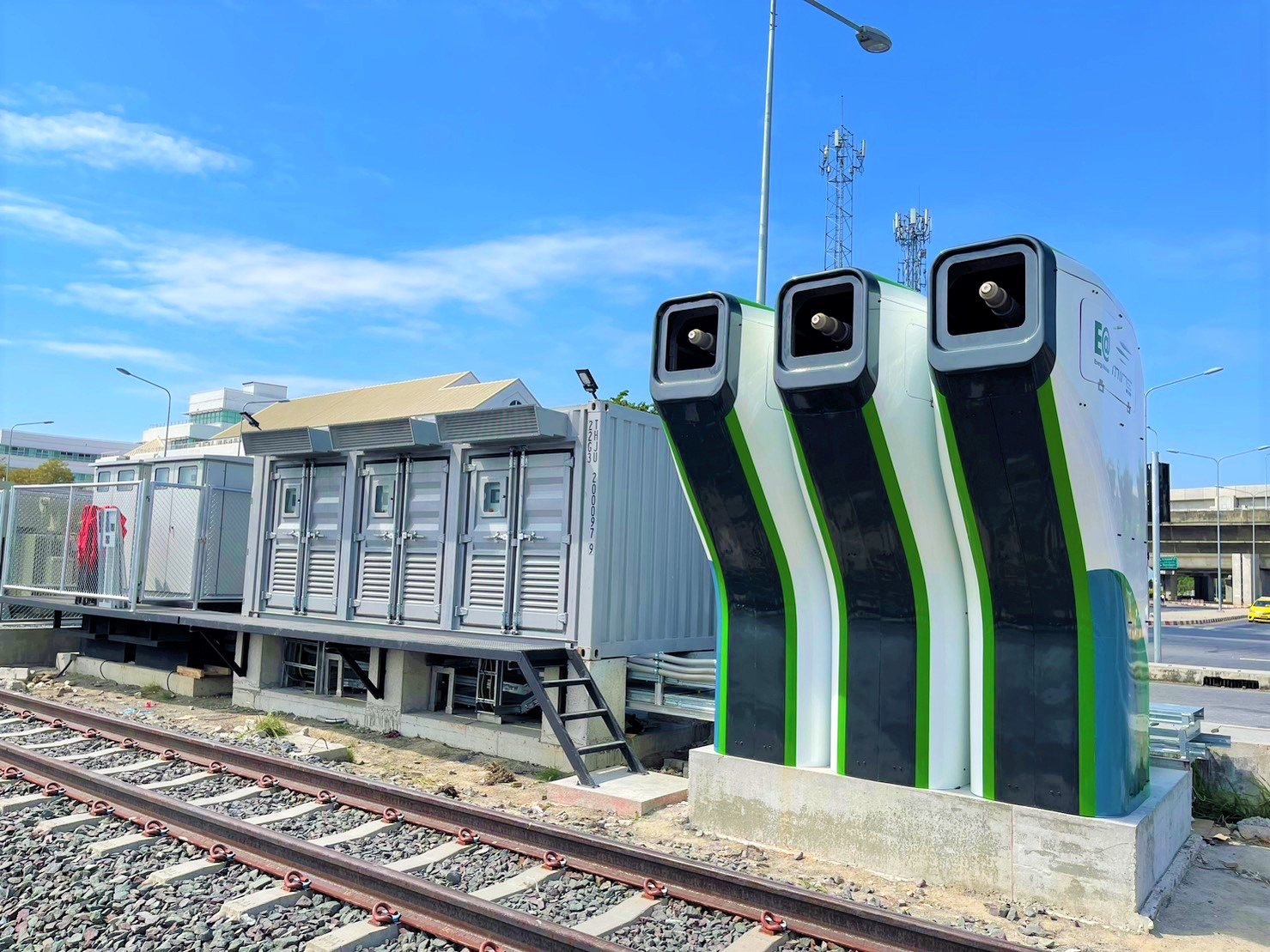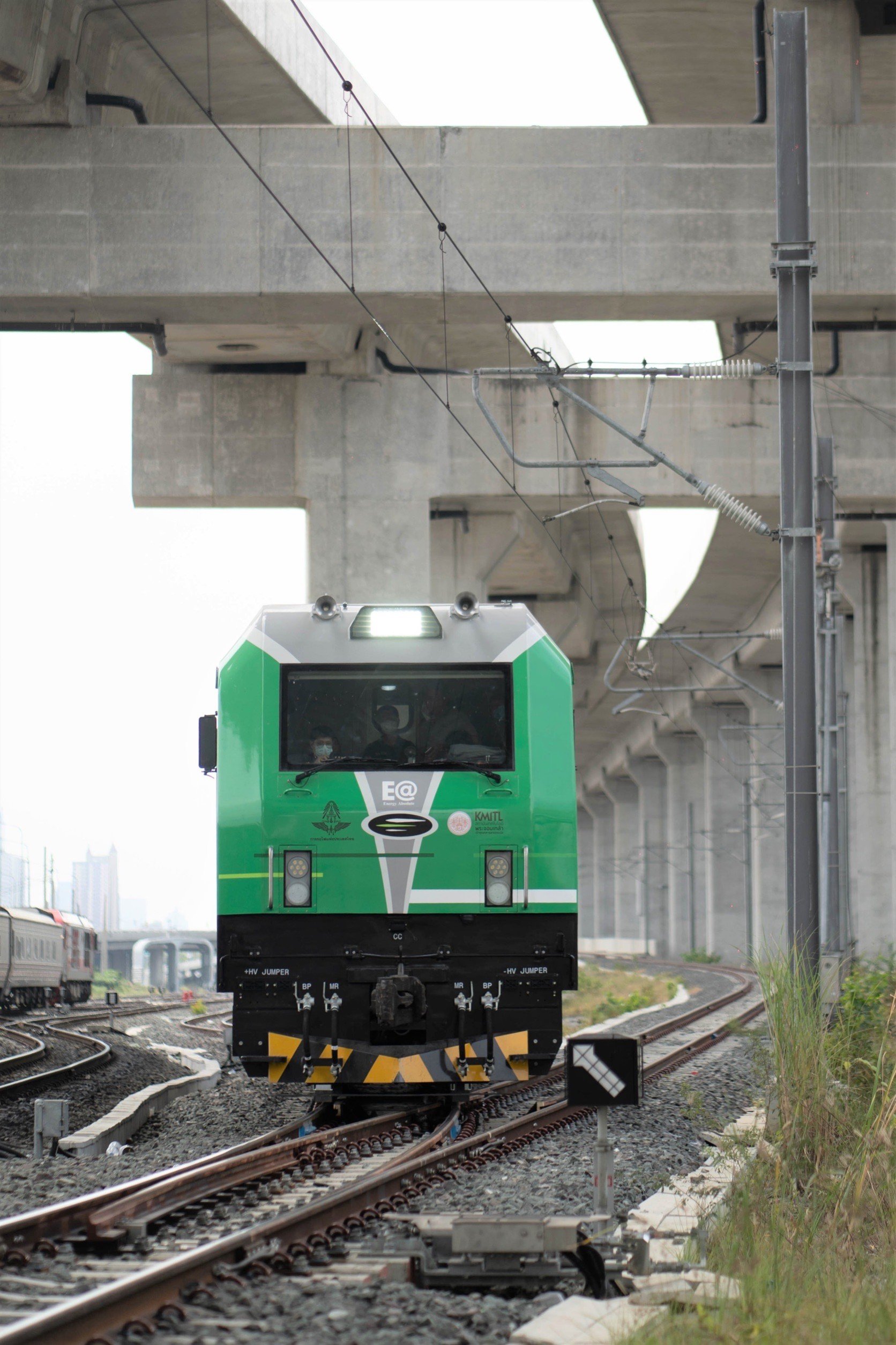 บริษัท พลังงานบริสุทธิ์ จำกัด (มหาชน) หรือ EA ร่วมกับ CRRC Dalian ผู้ผลิตรถไฟรายใหญ่จากประเทศจีน ได้รับโอกาสจากกระทรวงคมนาคม โดยการรถไฟแห่งประเทศไทย (รฟท.) และสถาบันเทคโนโลยีพระจอมเกล้าเจ้าคุณทหารลาดกระบัง ผลักดันนโยบาย EV on Train พร้อมร่วมมือกับภาควิชาการ เริ่มทดสอบระบบสับเปลี่ยนขบวน (Shunting) ณ สถานีกลางกรุงเทพอภิวัฒน์ โดยหัวรถจักรไฟฟ้า (EV) หรือ “MINE Locomotive” แบตเตอรี่ขนาด 4.1 MWh สามารถวิ่งได้ระยะกว่า 300 กิโลเมตร ผสานเทคโนโลยีการอัดประจุ Ultra-Fast Charge ของ EA Anywhere ใช้เวลาชาร์จเพียง 1 ชั่วโมง และประหยัดต้นทุนพลังงานได้กว่า 40% เมื่อเปรียบเทียบกับหัวรถจักรดีเซล