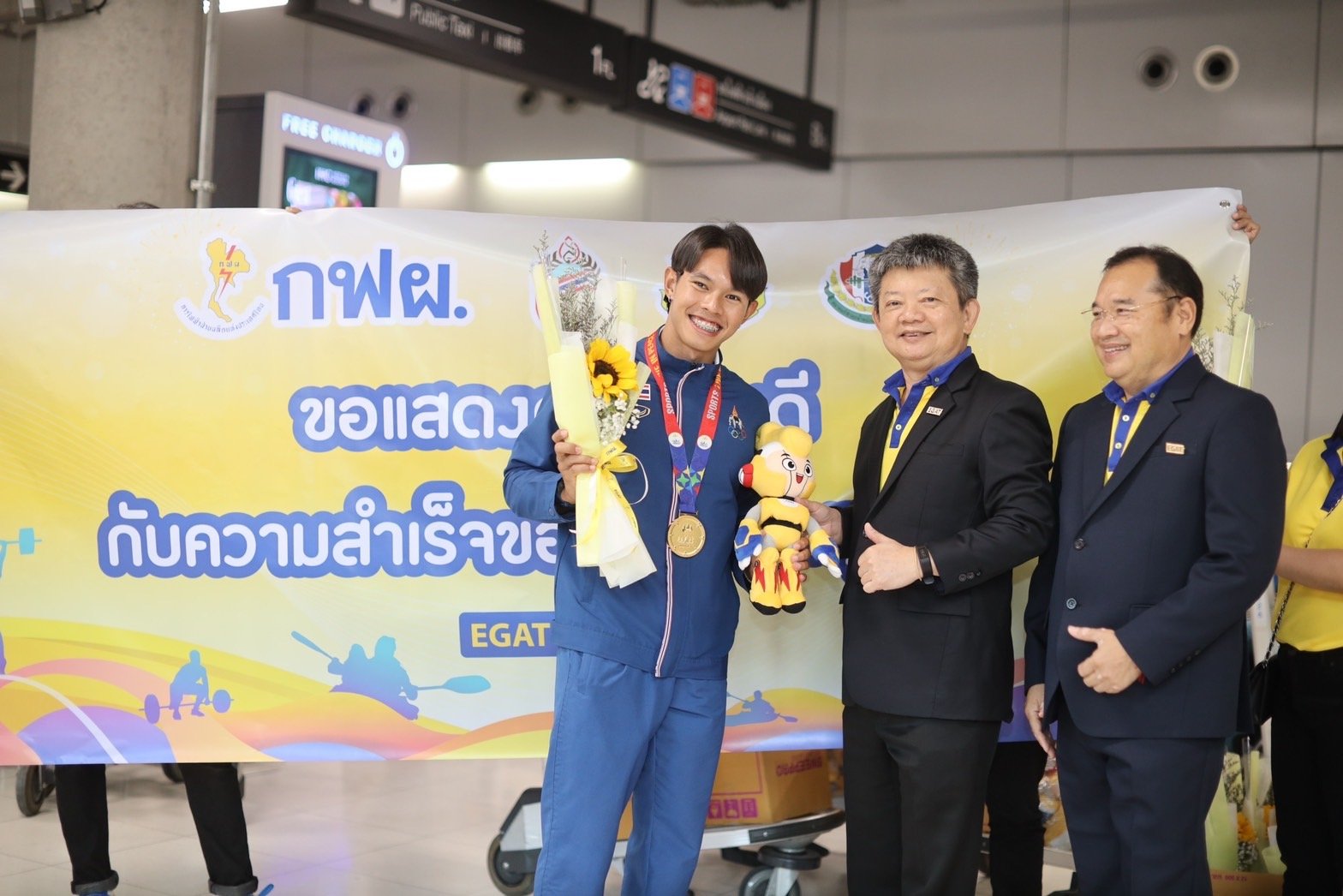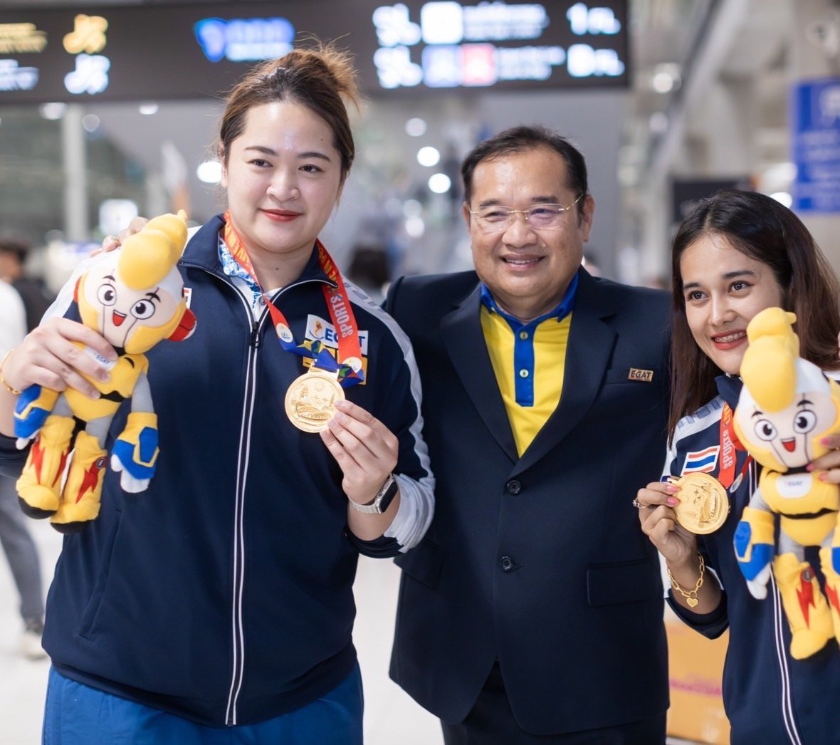 กฟผ. สมาคมเรือพายฯ สมาคมยกน้ำหนักฯ และแฟนกีฬาไทย ร่วมต้อนรับทัพนักกีฬาเรือพาย และยกน้ำหนักอย่างอบอุ่น หลังสร้างผลงานยอดเยี่ยมในซีเกมส์ครั้งที่ 32 กวาด 8 เหรียญเรือพาย 10 เหรียญยกน้ำหนัก นำชื่อเสียงมาสู่ประเทศ