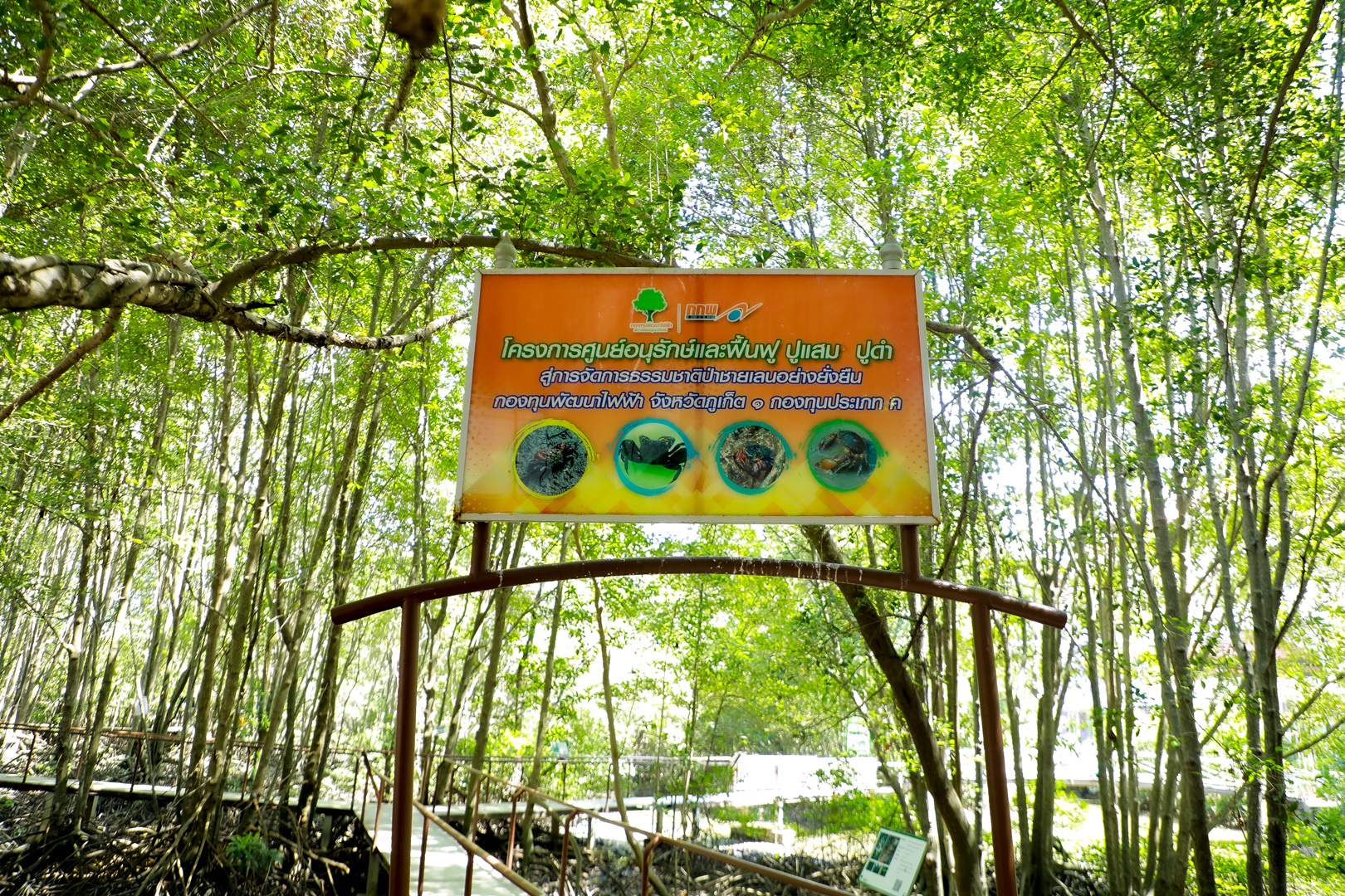 โครงการศูนย์อนุรักษ์และฟื้นฟูปูแสม ปูดำ สู่การจัดการธรรมชาติ ได้รับงบประมาณสนับสนุนจากกองทุนพัฒนาไฟฟ้า จำนวน 473,000 บาท ระยะเวลาดำเนินโครงการตั้งแต่วันที่ 1 พฤศจิกายน 2561 – 31 มีนาคม 2562 เพื่อก่อสร้างสะพานทางเดินศึกษาธรรมชาติป่าชายเลน (Walk Way) ในการศึกษาธรรมชาติและสิ่งแวดล้อมในโรงเรียน สู่จุดเรียนรู้ธรรมชาติป่ายเลน การจัดทำคอนโด (บ้านอนุรักษ์พันธุ์ปู พันธุ์ปลา) และจัดทำแหล่งเรียนรู้ให้กับชาวบ้านในชุมชน มีการจัดซื้อวัสดุอุปกรณ์ เพื่อจัดทำพื้นที่อนุรักษ์ปูแสม ปูดำ และจัดทำป้าย บอร์ดต่าง ๆ เพื่อให้ความรู้เกี่ยวพันธุ์ไม้ ลักษณะปู เป็นต้น ซึ่งทำให้เกิดการท่องเที่ยวเชิงนิเวศด้วย