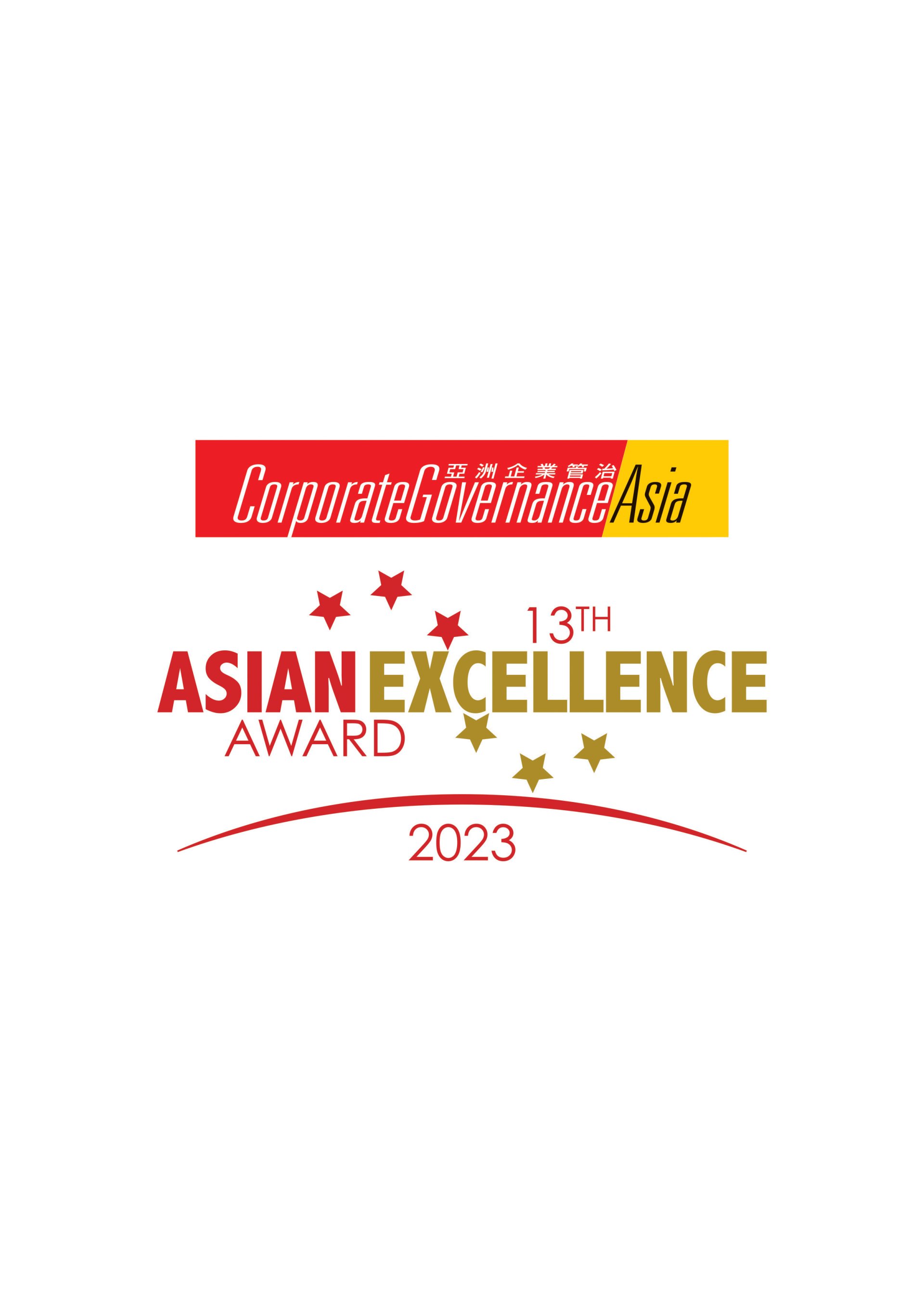 รางวัล 13th Asian Excellence Award จัดโดยนิตยสาร Corporate Governance Asia ผู้ที่ได้รับรางวัลจะต้องผ่านการพิจารณาจากข้อมูลองค์กรร่วมกับผลสำรวจความคิดเห็นของนักลงทุน นักวิเคราะห์ และผู้ทรงคุณวุฒิ ทั่วภูมิภาคเอเชีย เพื่อมอบรางวัลให้กับบุคคลหรือองค์กรที่มีการดำเนินธุรกิจอย่างยั่งยืนและมีธรรมาภิบาล พร้อมดูแลรับผิดชอบชุมชน สังคม และสิ่งแวดล้อมในระดับดีเยี่ยม