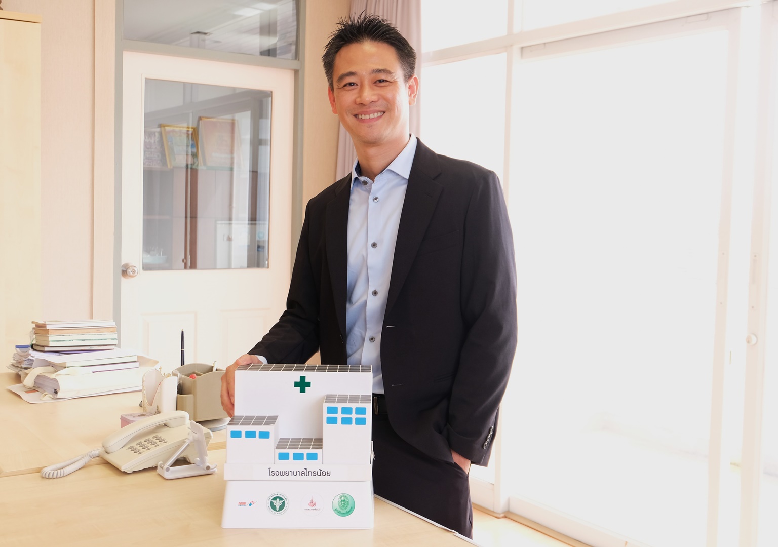 “สาเหตุที่เลือกโรงพยาบาลตามสถานศึกษา เพราะเป็นทั้งหน่วยงานด้านสาธารณสุขและด้านการศึกษา ซึ่งสอดคล้องกับวัตถุประสงค์ของกองทุนพัฒนาไฟฟ้า เพื่อส่งเสริมการใช้พลังงานหมุนเวียน ตอบโจทย์ทั้งด้านสาธารณสุขที่ใช้พลังงานเยอะ สามารถนำงบประมาณที่ลดลงจากการใช้พลังงานหมุนเวียนไปใช้ประโยชน์ในส่วนอื่น ยกตัวอย่างเช่น อุปกรณ์และการบริการทางการแพทย์ต่าง ๆ การติดตั้งโซลาร์เซลล์บนหลังคา สามารถลดค่าไฟฟ้าได้เฉลี่ยประมาณ 400,000 บาท/ปี หรือประมาณ 30,000 บาท/เดือน สำหรับการติดตั้งโซลาร์เซลล์ไม่เกิน 100 กิโลวัตต์ และยังช่วยเชื่อมโยงการใช้พลังงานสะอาดเข้าไปในชีวิตประจำวันอีกด้วย” นายธรณพงศ์ กล่าว