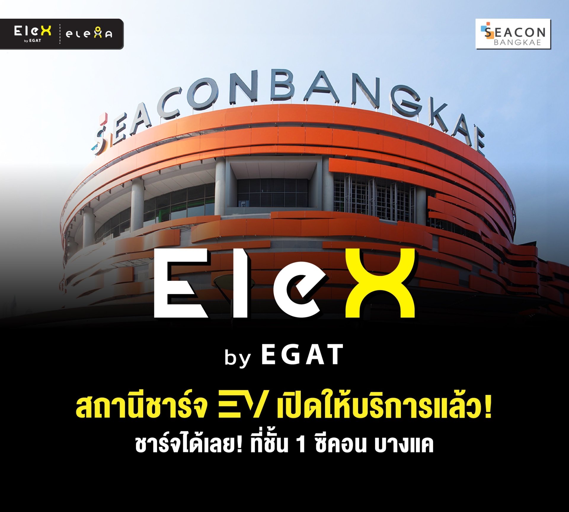 การไฟฟ้าฝ่ายผลิตแห่งประเทศไทย (กฟผ.) ร่วมกับ ศูนย์สรรพสินค้าซีคอน บางแค ร่วมเปิดให้บริการสถานีชาร์จ EleX by EGAT ที่อาคารจอดรถซีคอน บางแค ชั้น 1 สามารถรองรับรถ EV ได้จำนวน 4 ช่องจอด ซึ่งเป็นหัวชาร์จแบบความเร็วปกติ (AC Normal Charge) ขนาด 22 kW จำนวน 4 หัวชาร์จ เพื่อรองรับไลฟ์สไตล์ “Charge and Shop” อำนวยความสะดวกลูกค้าให้สามารถชาร์จแบตเตอรี่รถยนต์ขณะชอปปิงภายในศูนย์สรรพสินค้า