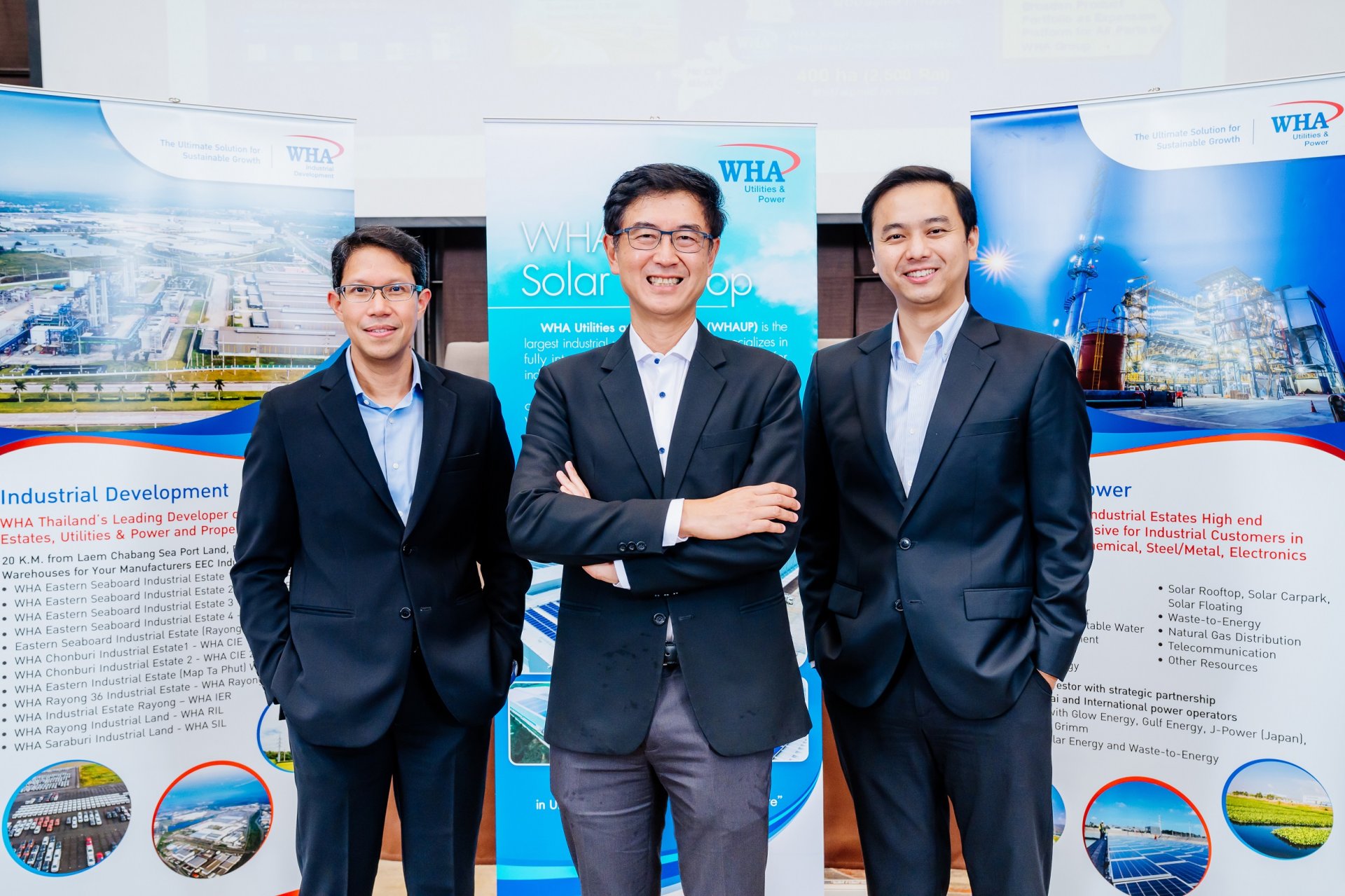 บริษัท ดับบลิวเอชเอ ยูทิลิตี้ แอนด์ พาวเวอร์ จำกัด (มหาชน) (WHAUP) ผู้ให้บริการด้านการบริหารจัดการระบบสาธารณูปโภค และพลังงานชั้นนำในประเทศไทยอย่างครบวงจร จัดงาน “WHAUP Analyst Meeting” ณ โรงแรมโอกุระ เพรสทีจ กรุงเทพฯ โดยมี นายสมเกียรติ เมสันธสุวรรณ (กลาง) ประธานเจ้าหน้าที่บริหาร พร้อมด้วย นายอัครินทร์ ประเทืองสิทธิ์ (ซ้าย) ประธานเจ้าหน้าที่ฝ่ายปฏิบัติการ และนายประพนธ์ ชินอุดมทรัพย์ (ขวา) ประธานเจ้าหน้าที่ฝ่ายบริหารการเงิน ร่วมนำเสนอข้อมูล ให้แก่นักวิเคราะห์จากบริษัทหลักทรัพย์ชั้นนำ พร้อมโชว์ผลงานไตรมาส 1/2567 ที่โดดเด่น ด้วยรายได้และส่วนแบ่งกำไรปกติแตะ 1,047 ล้านบาท เติบโต 29% และกำไรปกติ 372 ล้านบาท เติบโต 62% YoY การเติบโตที่โดดเด่นนี้ สะท้อนถึงความแข็งแกร่ง และความสามารถในการคว้าโอกาสจากแนวโน้มของตลาดที่กำลังเปลี่ยนแปลง พร้อมเดินหน้าหาโอกาสขยายการลงทุนธุรกิจน้ำ-พลังงาน ในรูปแบบต่างๆ ทั้งในประเทศและต่างประเทศ รวมถึงการสร้างการเติบโตอย่างยั่งยืนทั้งภายในและภายนอกนิคมอุตสาหกรรมฯ พร้อมนี้ บริษัทฯ วางแผนเดินหน้า Green Logistics สอดรับตามแผนของ WHA Group สู่การตั้งเป้าขยายการให้บริการสถานีชาร์จรถ EV ครบ 120 ตู้ชาร์จภายในปีนี้