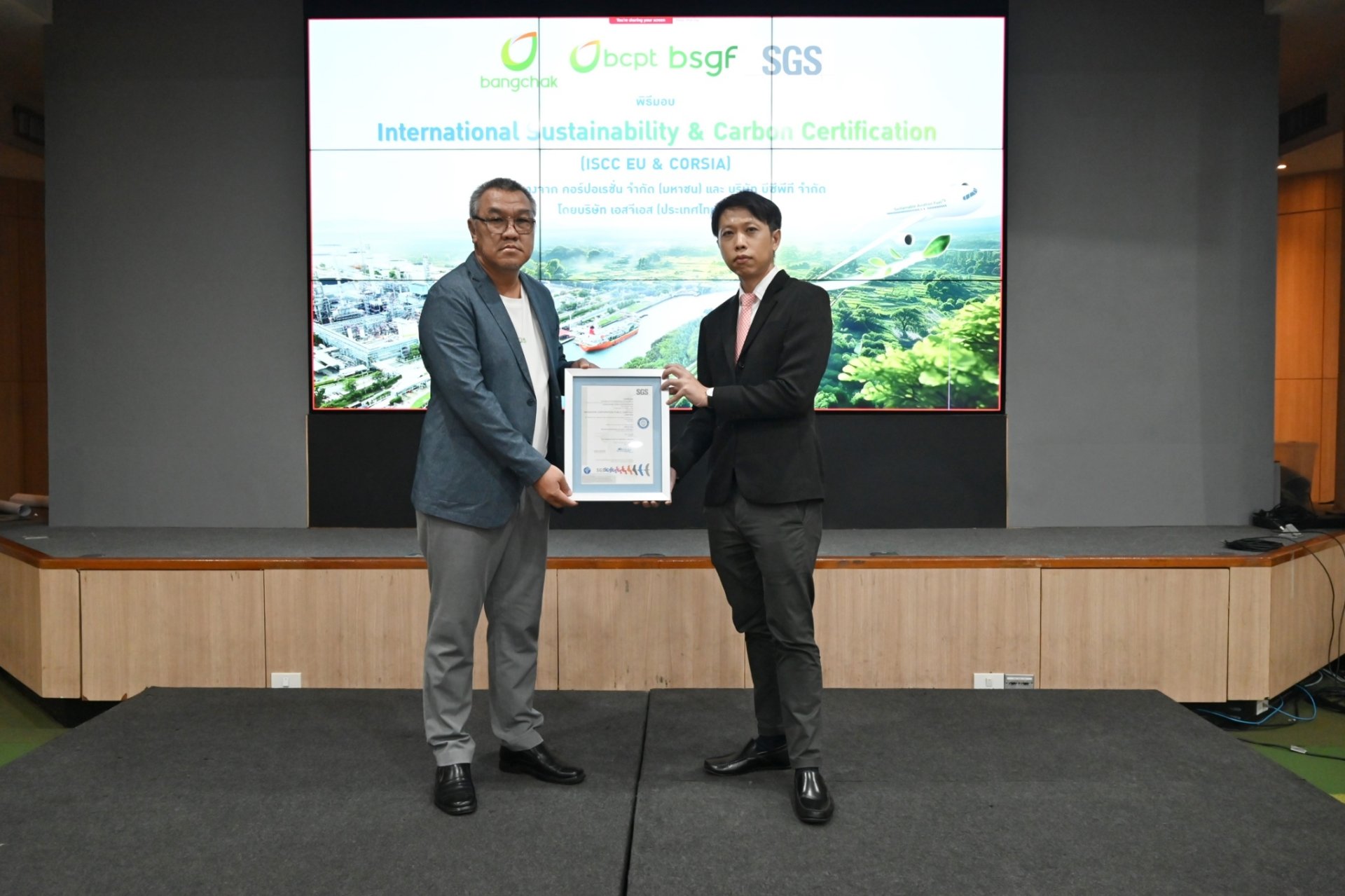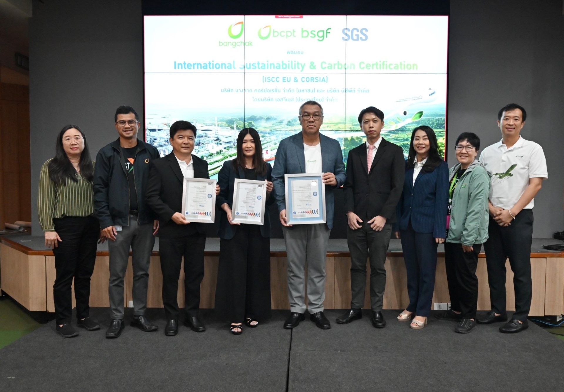 บริษัท บางจาก คอร์ปอเรชั่น จำกัด (มหาชน) พร้อมด้วย บริษัท บีซีพีที จำกัด และ บริษัท บีเอสจีเอฟ จำกัด บริษัทในกลุ่มบริษัทบางจาก ได้รับการรับรองมาตรฐาน International Sustainability & Carbon Certification หรือ ISCC ครอบคลุมทั้งห่วงโซ่อุปทานสำหรับการจัดจำหน่ายเชื้อเพลิงยั่งยืน โดยเมื่อเร็ว ๆ นี้ นายธรรมรัตน์ ประยูรสุข รองกรรมการผู้จัดการใหญ่ กลุ่มธุรกิจโรงกลั่นและการค้าน้ำมัน บริษัท บางจาก คอร์ปอเรชั่น จำกัด (มหาชน) นางองค์อร เปลี่ยนรังษี ผู้ช่วยกรรมการผู้จัดการใหญ่ กลุ่มธุรกิจโรงกลั่นและการค้าน้ำมัน ในฐานะกรรมการผู้จัดการ บริษัท บีซีพี เทรดดิ้ง (BCP Trading Pte. Ltd.) และ นายนิพนธ์ เลิศทัศนีย์ ผู้ช่วยกรรมการผู้จัดการใหญ่ สายงานบริหารโครงการวิศวกรรมและ โลจิสติกส์ บริษัท บางจาก คอร์ปอเรชั่น จำกัด (มหาชน) ในฐานะกรรมการ บริษัท บีเอสจีเอฟ จำกัด รับมอบการรับรองมาตรฐาน International Sustainability & Carbon Certification หรือ ISCC จาก นายธีรชัย เยาว์พฤกษ์ชัย รองผู้จัดการสายธุรกิจ บริษัท เอสจีเอส (ประเทศไทย) จำกัด ซึ่งเป็นหน่วยงานที่ให้การรับรองมาตรฐาน ISCC ณ โรงกลั่นน้ำมันบางจาก พระโขนง