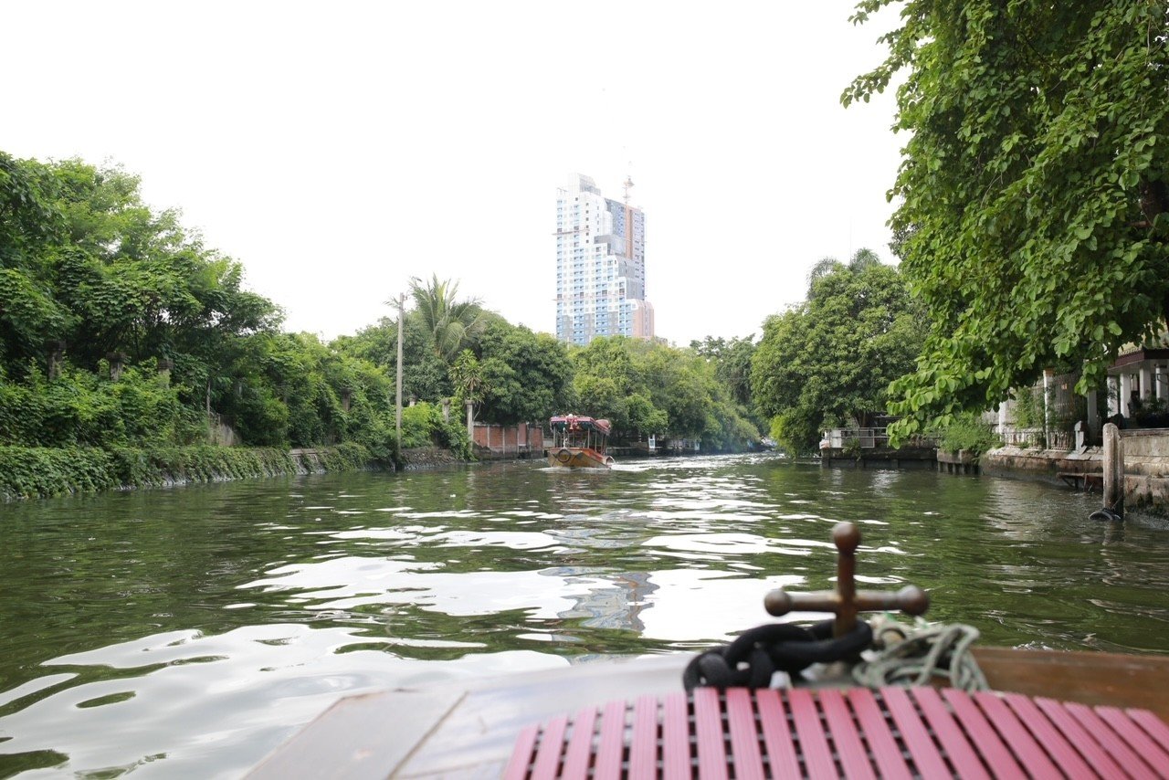 บรรยากาศการท่องเที่ยวในทริป เรือค่อยๆ ล่องผ่านชมพระใหญ่วัดปากน้ำภาษีเจริญ จากนั้นจอดเพื่อท่องเที่ยวชมวัดนางนอง ก่อนแวะไปตั้งวงเสวนาเล็กๆ กันที่ภูมิใจการ์เด้น สวนโบราณที่อยากเชื่อมผู้คนกับคลองบางขุนเทียนเข้าด้วยกัน นางพรทิพย์ เทียนทรัพย์ เกิดและเติบโตมาในบ้านกลางสวนลิ้นจี่โบราณใน ที่สืบทอดกันมาอายุนับร้อยปี โดยมีความตั้งใจที่อยากทำให้รอบบ้านกลับมามีชีวิตชีวาอีกครั้ง อยากสร้างสวนแห่งนี้ให้กลายเป็นศูนย์กลาง ที่ทำให้เพื่อนบ้านและสังคมใกล้บ้านได้กลับมาเชื่อมต่อกับคลองอีกครั้ง พร้อมเชื่อมต่อกับโลกภายนอกที่เปลี่ยนแปลงไปให้เข้ากับเรื่องราวและประวัติศาสตร์ท้องถิ่นของย่าน ได้พาชมสวนและแนะนำสวนลิ้นจี่สวนสุดท้ายที่เหลืออยู่ในกรุงเทพมหานคร รวบรวมพื้นที่สวนของญาติที่อยู่ติดกันซึ่งถูกทิ้งให้กลายเป็นพื้นที่รกร้างเสื่อมโทรมกลับมาบำรุงรักษาให้ดี พร้อมทั้งจัดกิจกรรมหลายอย่าง เช่น นำชมวงน รับจัดกิจกรรมเอาท์ติ้ง คลาสสอนทำอาหารและศิลปะจากวัสดุธรรมชาติ โดยมีการจ้างงานน้องๆในชุมชนมาช่วยในช่วงวันหยุด รวมถึงเปิดเป็นคาเฟ่เล็กๆที่ได้รับความนิยมสูงจากทั้งคนไทยและต่างชาติ
