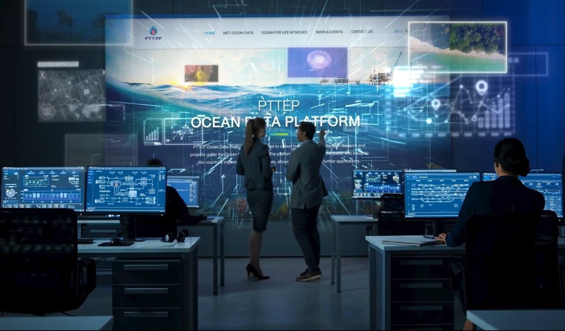 บริษัท ปตท.สำรวจและผลิตปิโตรเลียม จำกัด (มหาชน) หรือ ปตท.สผ. พัฒนาแพลตฟอร์มข้อมูลวิทยาศาสตร์ทางทะเล หรือ PTTEP Ocean Data Platform เพื่อรวบรวมข้อมูลวิทยาศาสตร์ทางทะเล ซึ่งนับเป็นครั้งแรกในประเทศไทยที่มีการใช้แท่นผลิตปิโตรเลียมนอกชายฝั่งเป็นสถานีเก็บข้อมูลด้านอุตุนิยมวิทยาและด้านสมุทรศาสตร์ เช่น อุณหภูมิอากาศ ทิศทางลม อุณหภูมิน้ำ และการไหลเวียนของกระแสน้ำ เป็นต้น โดย ปตท.สผ. ร่วมมือกับหลายภาคส่วน อาทิ กรมทรัพยากรทางทะเลและชายฝั่ง (ทช.) สถาบันสารสนเทศทรัพยากรน้ำ (องค์กรมหาชน) และมหาวิทยาลัยเกษตรศาสตร์ เป็นต้น ในการเก็บข้อมูลดังกล่าว