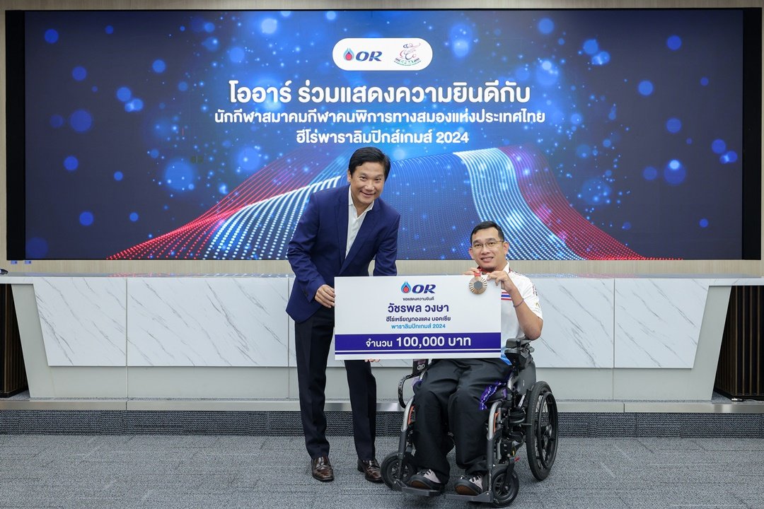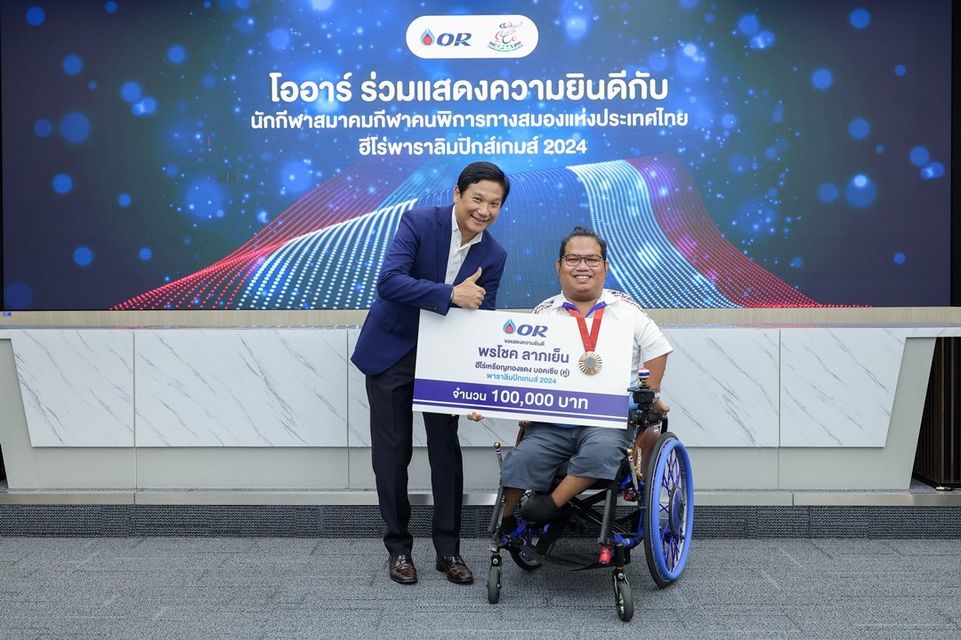 นายดิษทัต ปันยารชุน ประธานเจ้าหน้าที่บริหาร บริษัท ปตท. น้ำมันและการค้าปลีก จำกัด (มหาชน) หรือ OR ร่วมแสดงความยินดีแก่นักกีฬาจากสมาคมกีฬาคนพิการทางสมองแห่งประเทศไทย ที่สร้างผลงานยอดเยี่ยมในการแข่งขันพาราลิมปิกเกมส์ ครั้งที่ 17 ณ กรุงปารีส ประเทศฝรั่งเศส พร้อมมอบเงินรางวัลแก่นักกีฬาทั้ง 5 ท่านที่สามารถคว้า 6 เหรียญรางวัล ประกอบด้วย 2 เหรียญทอง ได้แก่ นายวรวุฒิ แสงอำภา จากกีฬาบอคเซีย ประเภทชายเดี่ยว นายชัยวัฒน์ รัตนะ จากกีฬากรีฑา วีลแชร์เรสซิ่ง 100 เมตร ชาย รางวัลละ 300,000 บาท 1 เหรียญเงิน ได้แก่ นายชัยวัฒน์ รัตนะ จากกีฬากรีฑา วีลแชร์เรสซิ่ง 800 เมตร ชาย รางวัลละ 200,000 บาท และ 3 เหรียญทองแดง ได้แก่ นายวัชรพล วงษา จากกีฬาบอคเซีย ประเภทชายเดี่ยว นายพรโชค ลาภเย็น จากกีฬาบอคเซีย ประเภทคู่ผสม และนางสาวนวลจันทร์ พลศิลา จากกีฬาบอคเซีย ประเภทคู่ผสม รางวัลละ 100,000 บาท รวมมูลค่าเงินรางวัล 1,100,000 บาท ณ ห้องพลังไทย 2 อาคาร 2 ปตท. สำนักงานใหญ่