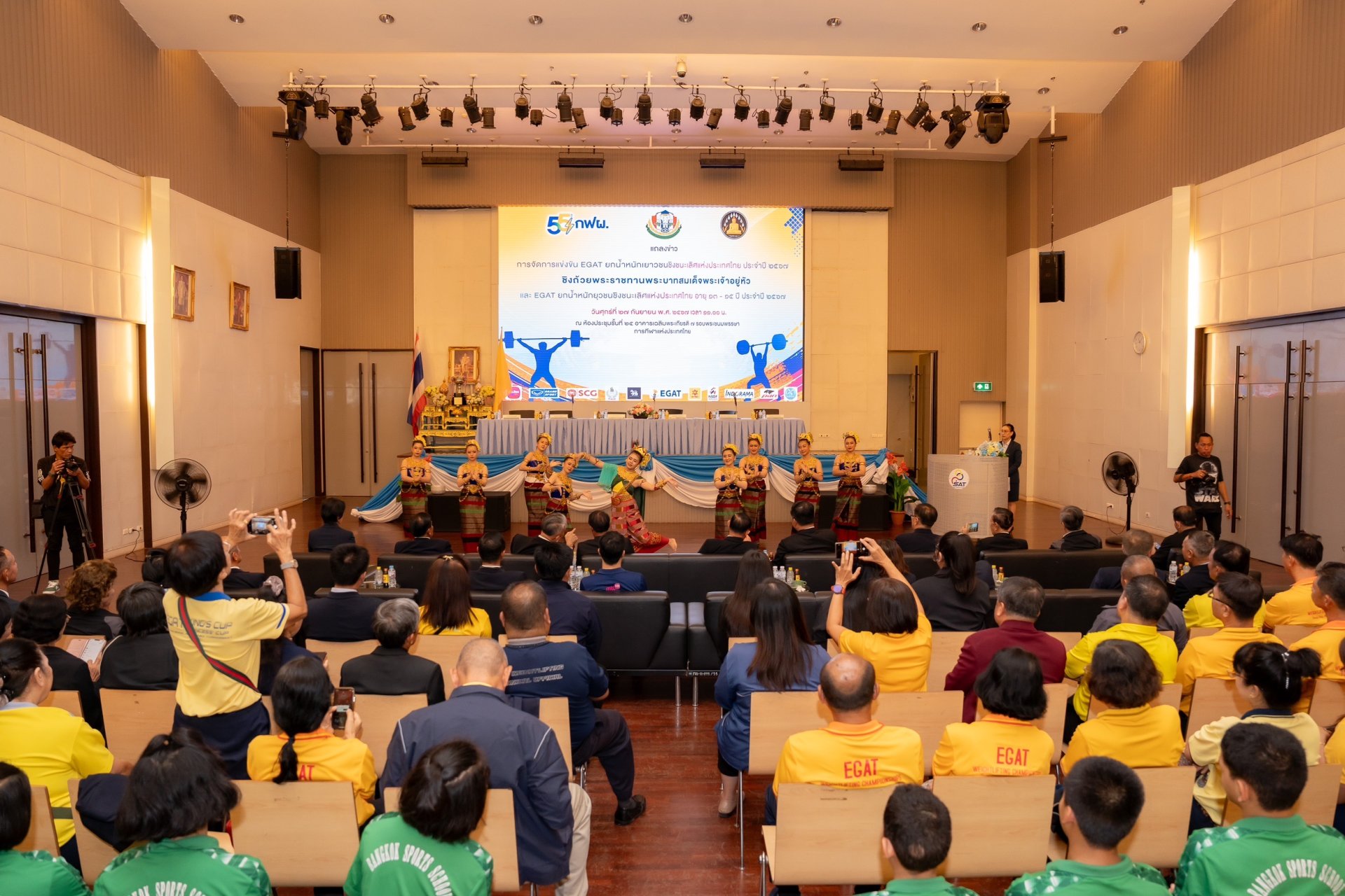 นายปรัชญา กีรตินันท์ นายกสมาคมกีฬายกน้ำหนักสมัครเล่นแห่งประเทศไทย นายนำพล โพธิวงศ์ ผู้อำนวยการฝ่ายกลยุทธ์ความยั่งยืน การไฟฟ้าฝ่ายผลิตแห่งประเทศไทย (กฟผ.) นายบำรุง สังข์ขาว รองผู้ว่าราชการจังหวัดพะเยา และพลอากาศโท วัฒนชัย เจริญรัตน์ กรรมการและประธานฝ่ายเทคนิคสมาคมกีฬายกน้ำหนักสมัครเล่นแห่งประเทศไทย ร่วมแถลงข่าวการแข่งขัน EGATยกน้ำหนักเยาวชนชิงชนะเลิศแห่งประเทศไทย ประจำปี 2567 ชิงถ้วยพระราชทานพระบาทสมเด็จพระเจ้าอยู่หัว และ EGAT ยุวชนชิงชนะเลิศแห่งประเทศไทย อายุ 13 - 15 ปี ประจำปี 2567 ณ การกีฬาแห่งประเทศไทย กรุงเทพฯ