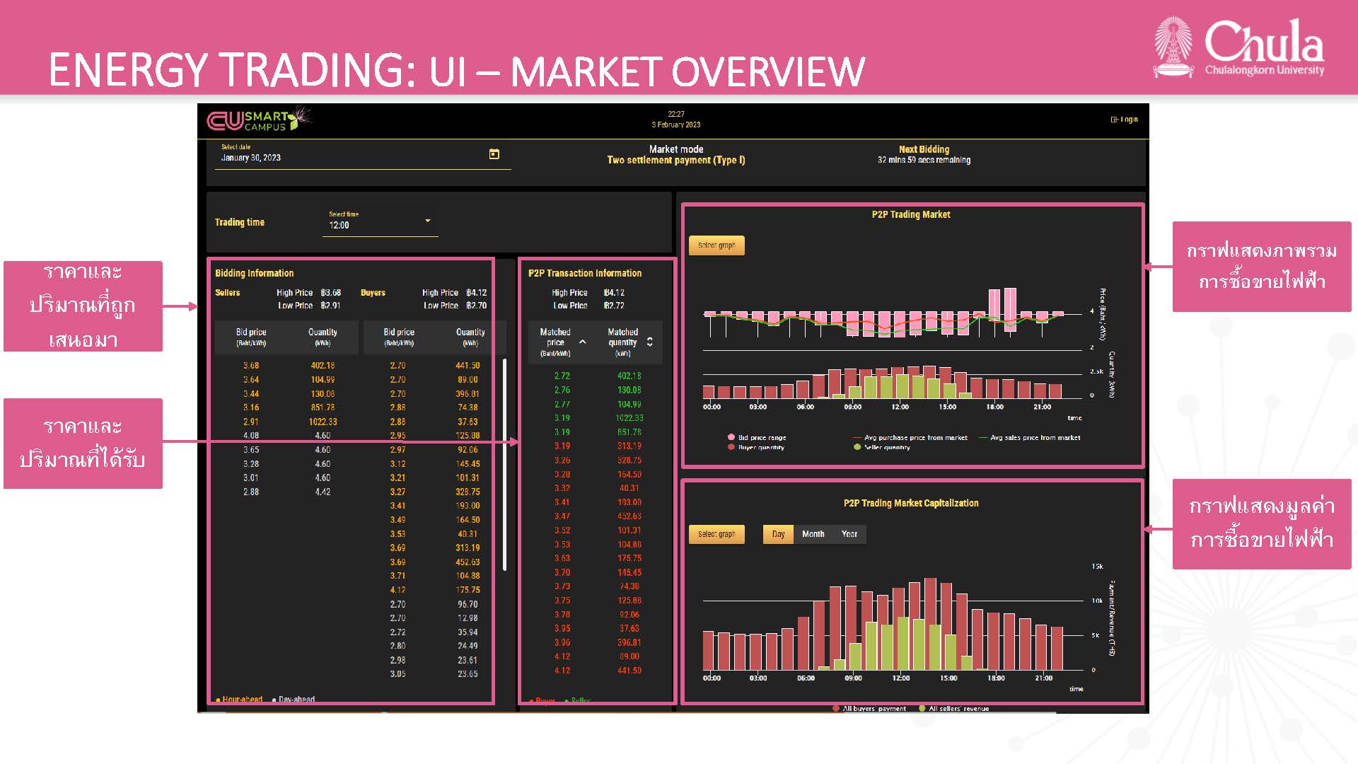 ภาพรวมมูลค่าการซื้อขายไฟฟ้าแบบ Peer-to-Peer ภายในจุฬาลงกรณ์มหาวิทยาลัย