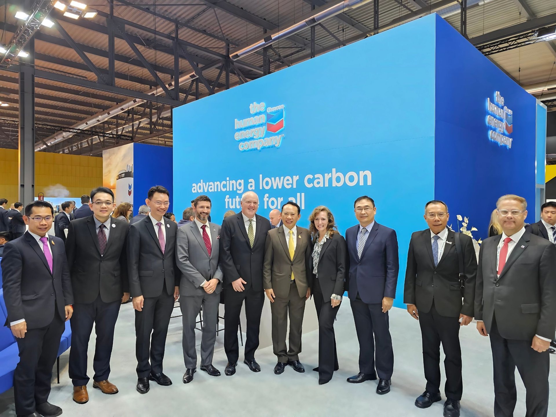 นิทรรศการของเชฟรอนที่งาน Gastech แสดงถึงความมุ่งมั่นในการจัดหาพลังงานที่มีความเข้มข้นของคาร์บอนน้อยลงและการลงทุนในเทคโนโลยีต่างๆ ของบริษัทฯ เพื่อช่วยในการลดการปล่อยคาร์บอน โดยการเยี่ยมชมในครั้งนี้ ผู้บริหารกระทรวงพลังงานได้มีโอกาสแลกเปลี่ยนความคิดเห็นกับผู้บริหารของเชฟรอนในเรื่องการเปลี่ยนผ่านพลังงานและโอกาสต่างๆ ในการพัฒนานวัตกรรมที่สอดคล้องกับเป้าหมายทางพลังงานของประเทศ