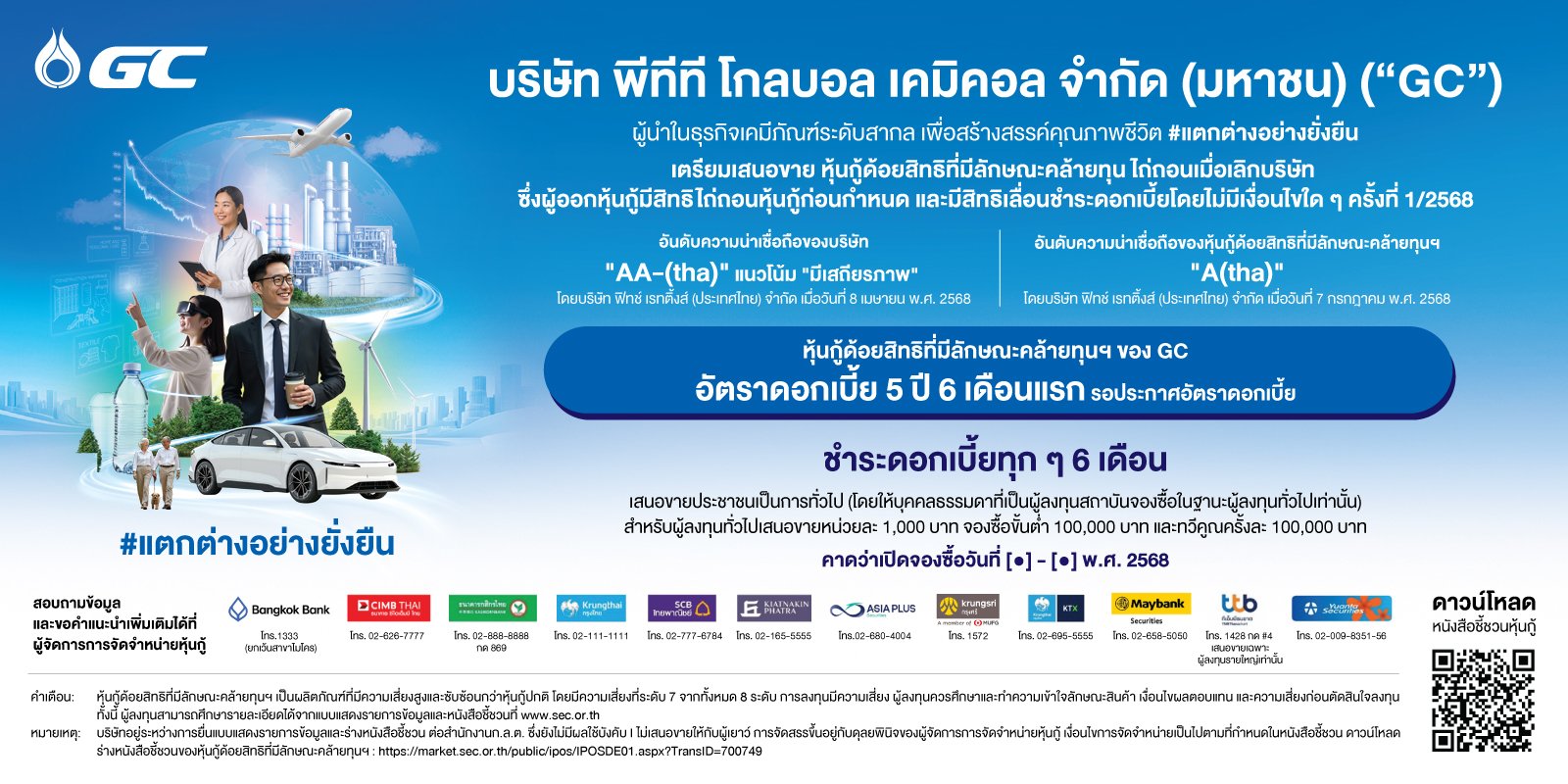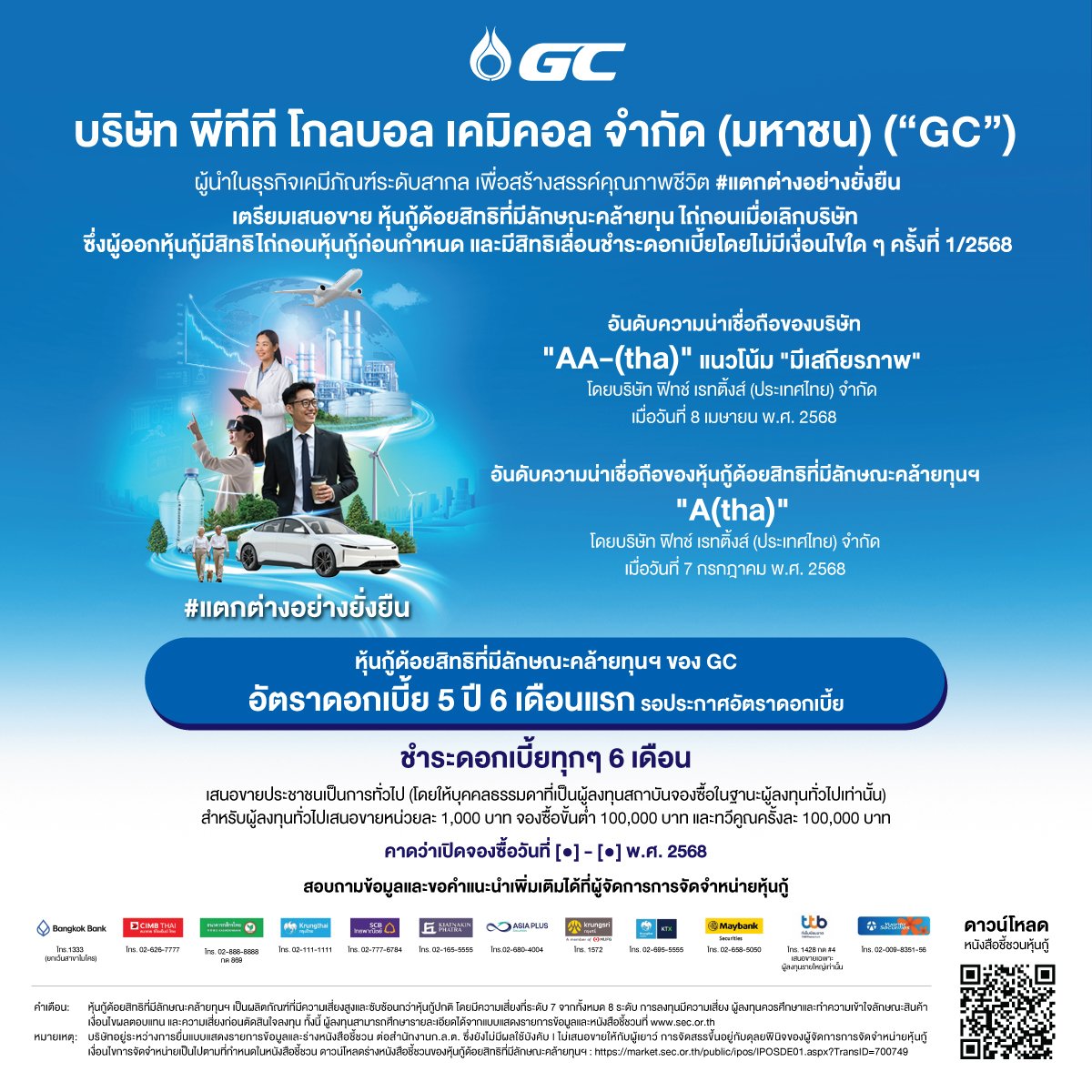 ด้านผู้จัดการการจัดจำหน่ายหุ้นกู้ในครั้งนี้ กล่าวเสริมว่า “หุ้นกู้ด้อยสิทธิที่มีลักษณะคล้ายทุนของ GC เป็นทางเลือกที่น่าสนใจ จากการจัดอันดับโดยบริษัท ฟิทช์ เรทติ้งส์ (ประเทศไทย) จำกัด เมื่อวันที่ 8 เมษายน พ.ศ. 2568 GC มีอันดับความน่าเชื่อถือ อยู่ที่ระดับ AA- (tha) แนวโน้ม “มีเสถียรภาพ” และเมื่อวันที่ 7 กรกฎาคม พ.ศ. 2568 ได้มีการจัดอันดับความน่าเชื่อถือของหุ้นกู้ด้อยสิทธิที่มีลักษณะคล้ายทุนฯ นี้ที่ระดับ A (tha) ซึ่งจัดว่าอยู่ในกลุ่มที่มีอันดับความน่าเชื่อถือสูงในตลาดตราสารหนี้ไทย โดยถ้าพิจารณาจากความสามารถในการชำระเงินต้นและดอกเบี้ยสามารถดูได้จากจากอันดับความน่าเชื่อถือของบริษัทที่ระดับ AA- แต่ส่วนของอันดับความน่าเชื่อถือของหุ้นกู้ด้อยสิทธิที่มีลักษณะคล้ายทุนฯ ที่จะต่ำกว่าอันดับความน่าเชื่อถือของบริษัท 2 ระดับนั้น เนื่องจากโครงสร้างการชำระหนี้ของหุ้นกู้ที่จะด้อยสิทธิกว่าหุ้นกู้ปกติทั่วไป”