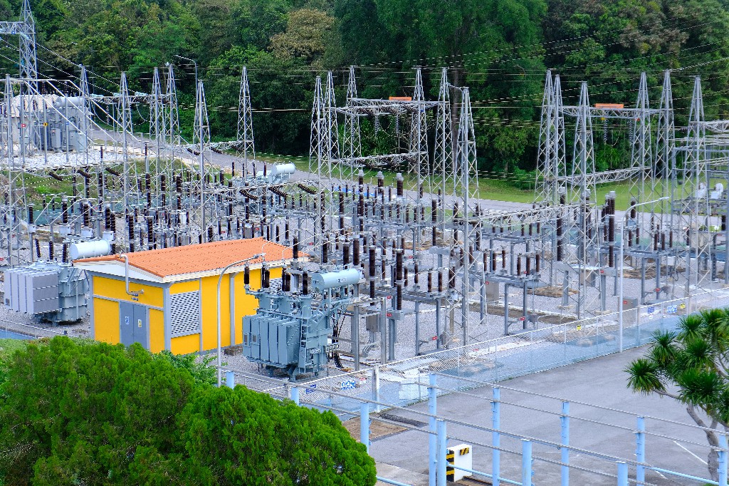 สายเคเบิ้ลนำกระแสไฟฟ้าขึ้นไปยังโรงไฟฟ้า