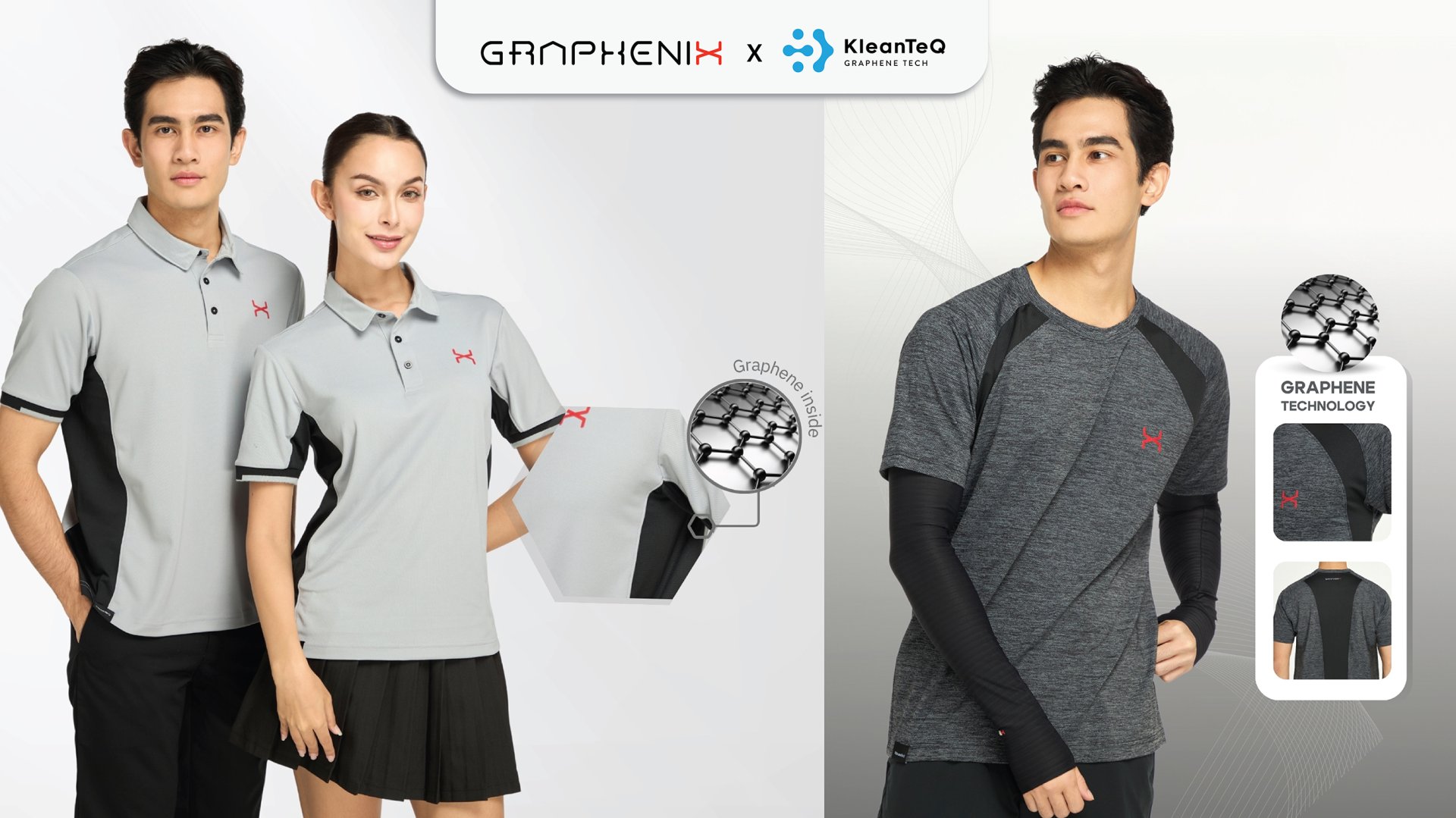 สำหรับคุณสมบัติเด่นของผลิตภัณฑ์ “Graphenix × KleanTeQ” จะเปลี่ยนคุณสมบัติของผ้าให้เหนือกว่า ด้วยสัมผัสแห่งความเย็นสบายระบายอากาศและความร้อนได้อย่างมีประสิทธิภาพ มอบความมั่นใจในทุกกิจกรรมกลางแจ้ง ปกป้องผิวจากรังสี UV พร้อมลดการสะสมของแบคทีเรียและกลิ่นอับ และด้วยคุณสมบัติปลดปล่อยรังสีอินฟราเรดคลื่นยาว (Far Infrared) ช่วยให้รู้สึกผ่อนคลายสบายตัวและสดชื่นตลอดวัน