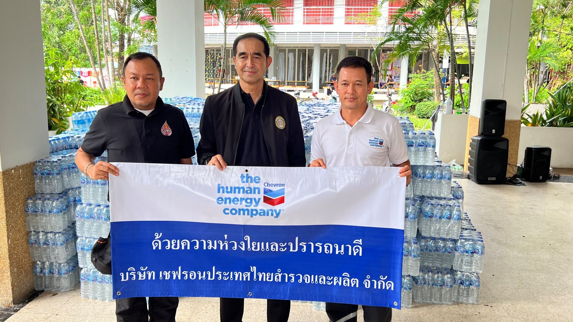 เชฟรอนมอบน้ำดื่ม 33,600 ขวด แก่ศูนย์พักพิง 2 แห่ง เพื่อช่วยเหลือผู้ที่ได้รับผลกระทบจากน้ำท่วมในพื้นที่จังหวัดสงขลา