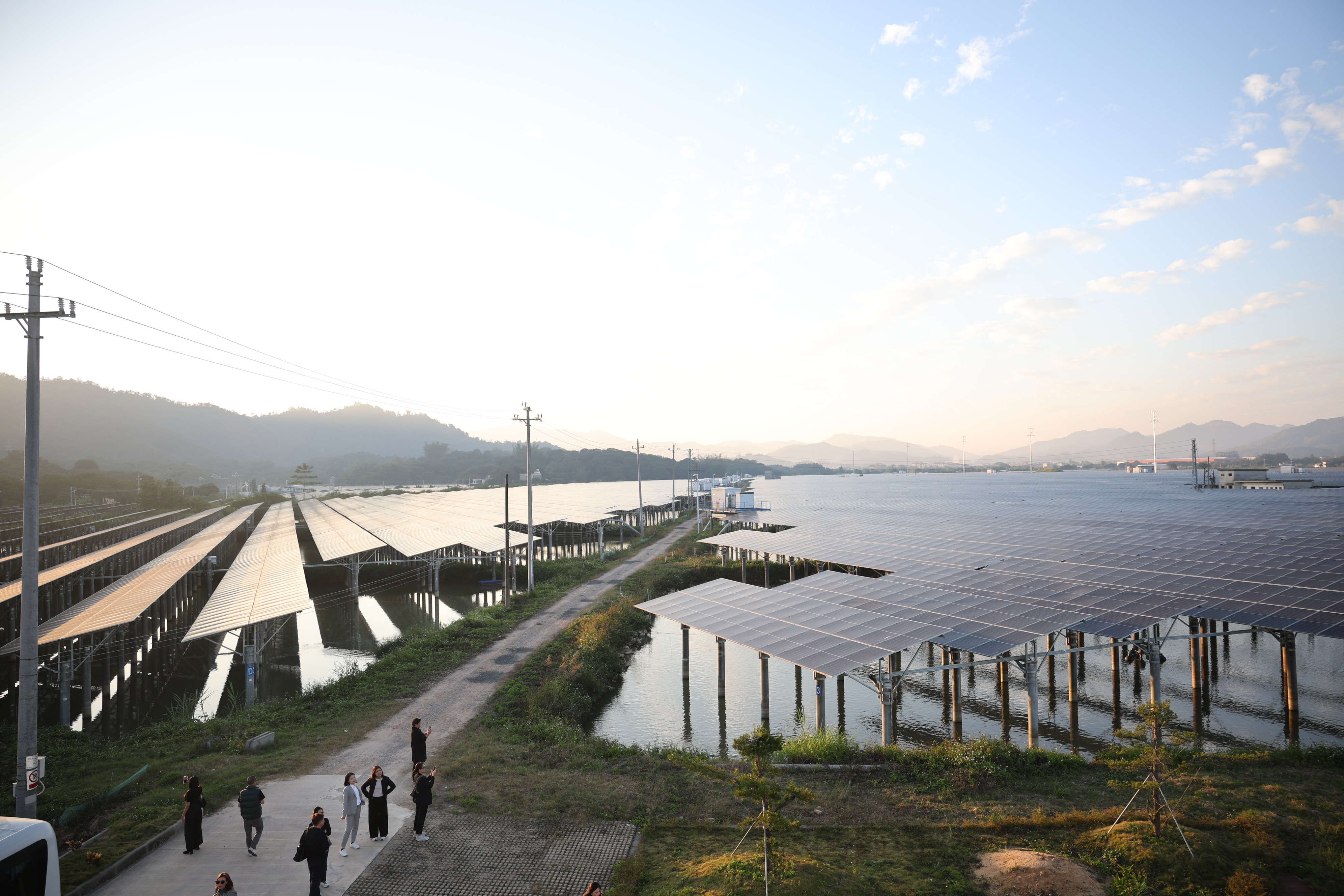 ได้มีโอกาสเข้าเยี่ยมชม คือ Floating Solar Farm ที่ใหญ่ที่สุดในมณฑลกวางตุ้ง ติดตั้งแผงโซลาร์เซลล์บนผิวน้ำขนาดมหาศาล ทำงานร่วมกับระบบฟาร์มประมง ช่วยลดอุณหภูมิน้ำ เพิ่มประสิทธิภาพการผลิตไฟฟ้า ลดการระเหยของน้ำชาวบ้านเลี้ยงปลา–เลี้ยงกุ้งใต้แผงได้ สร้างรายได้เสริม เป็นการพัฒนาที่เรียกว่า Green Plus Model “Green + X” เช่น Green + Fishing , Green + Agriculture และGreen + Tourism หมายความว่าโครงการพลังงานต้อง สร้างประโยชน์เพิ่มขึ้น ไม่ใช่แค่ผลิตไฟฟ้า