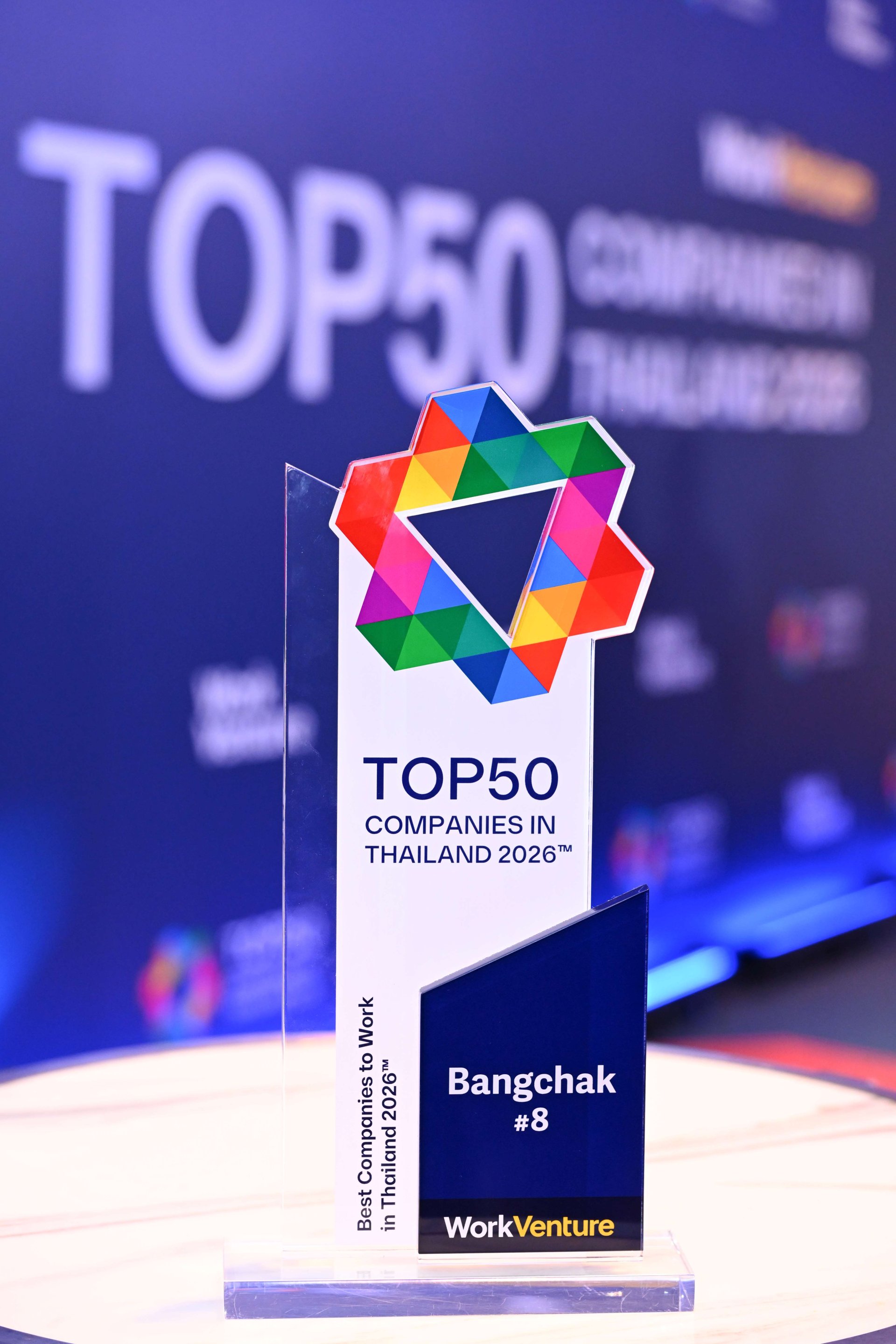 นางราตรีมณี ภาษีผล รองกรรมการผู้จัดการใหญ่ กลุ่มงานบริหารและพัฒนาศักยภาพองค์กร บริษัท บางจาก คอร์ปอเรชั่น จำกัด (มหาชน) รับรางวัล Top50 Companies in Thailand ประจำปี 2569 ซึ่งบางจากฯ ได้รับการจัดอันดับที่ 8 ในฐานะองค์กรที่คนรุ่นใหม่อยากร่วมงานมากที่สุด จากผลสำรวจโดยบริษัท WorkVenture Technologies Co., Ltd. ที่เก็บข้อมูลจากความคิดเห็นของคนรุ่นใหม่กว่า 10,000 คนทั่วประเทศ โดยมีนาย Jens Pold ประธานเจ้าหน้าที่บริหาร WorkVenture เป็นผู้มอบรางวัล ณ โรงแรม Nikko