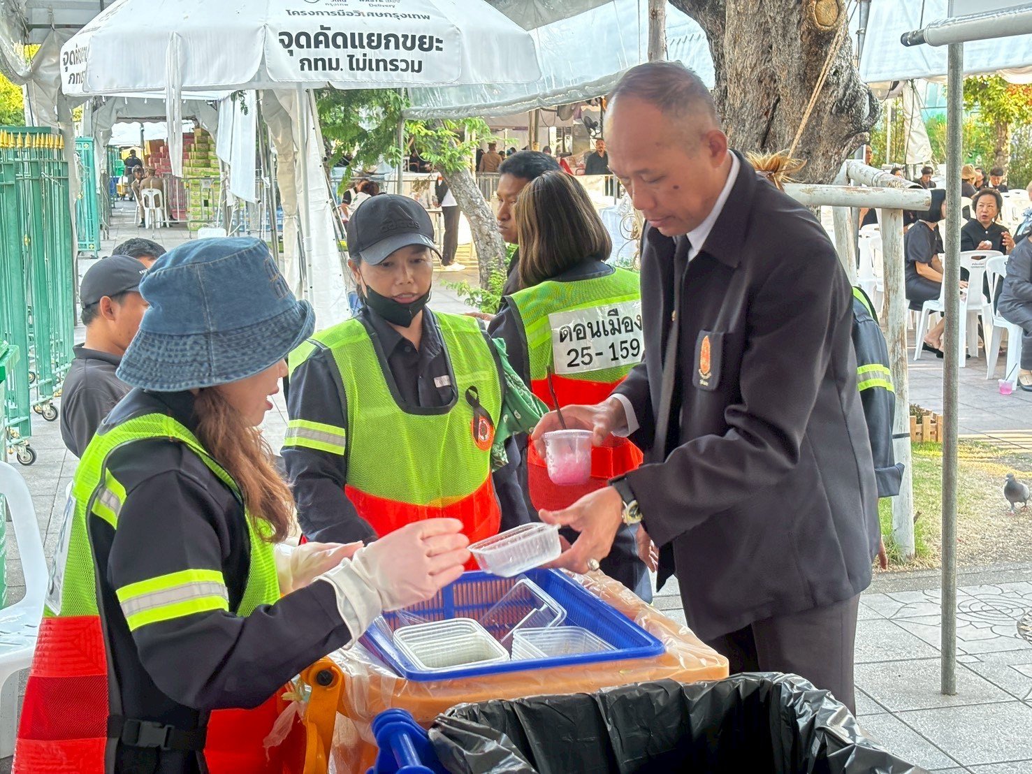 นายชัชชาติ สิทธิพันธุ์ ผู้ว่าราชการกรุงเทพมหานคร กล่าวว่า กรุงเทพมหานคร มีปริมาณขยะเกือบ 10,000 ตันต่อวัน ค่าใช้จ่ายในการกำจัดประมาณ 7,000 ล้านบาทต่อปี มีพนักงานที่เก็บขยะประมาณ 6,000 คน พนักงานกวาดถนนประมาณ 10,000 คน ในขณะที่ กทม. เก็บรายได้ได้เพียงประมาณ 1,600 ล้านบาท/ปี ซึ่งไม่เพียงพอกับค่ากำจัด ดังนั้นการลดและคัดแยกขยะ หรือบรรจุภัณฑ์ใช้แล้วตั้งแต่ต้นทาง จึงเป็นหัวใจสำคัญของการจัดการขยะอย่างยั่งยืน แต่ต้องยอมรับว่ามันเป็นเรื่องใหญ่และท้าทายสำหรับเมืองใหญ่อย่างกรุงเทพฯ โครงการ ‘ไม่เทรวม’ จึงเกิดขึ้นเพื่อสร้างต้นแบบเมืองที่ไม่เทรวม ให้ทุกคนเห็นว่า ถ้าเราร่วมมือกันจริงจัง บรรจุภัณฑ์ใช้แล้วก็สามารถกลับมาเป็นประโยชน์ได้จริง ความร่วมมือกับ SCGC ครั้งนี้ เป็นตัวอย่างที่ชัดเจน และยังช่วยกระตุ้นให้ประชาชนปรับพฤติกรรมการคัดแยกขยะมากขึ้นด้วย เก้าอี้ รักษ์โลกที่ทำจากบรรจุภัณฑ์ใช้แล้วเหล่านี้จะถูกนำไปใช้ในพระราชพิธีและกิจกรรมสาธารณะของกรุงเทพมหานครต่อไป”