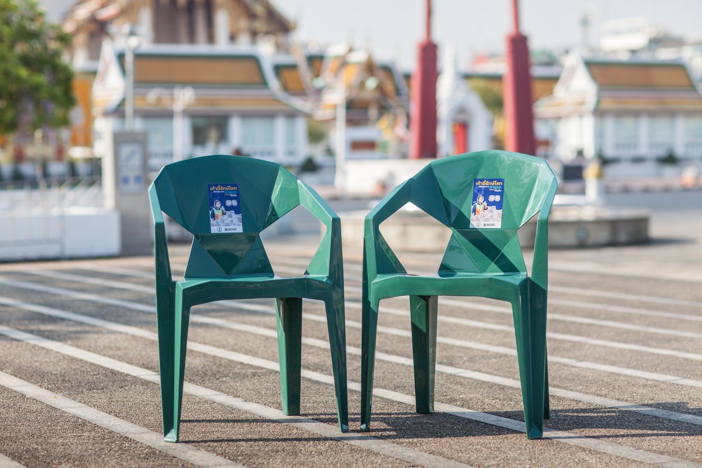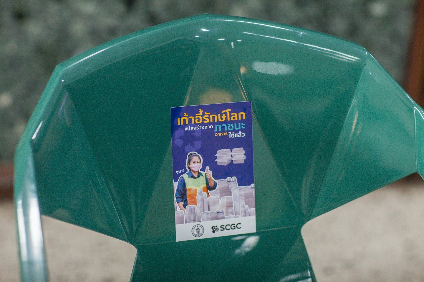 GREEN POLYMER โดยอาศัยความเชี่ยวชาญของ SCGC ในการปรับแต่งสูตรให้มีความแข็งแรง ทนทาน เหมาะกับการนำไปผลิตเป็นเก้าอี้รักษ์โลกที่สามารถใช้งานจริง นอกจากนี้ เพื่อส่งเสริมการคัดแยกขยะตั้งแต่ต้นทางอย่างเป็นระบบตามแนวทางของกรุงเทพมหานคร SCGC จึงได้สนับสนุนถุงขยะรักษ์โลก ซึ่งผลิตจากพลาสติกรีไซเคิล จำนวน 17,500 ใบให้แก่กรุงเทพมหานคร เพื่อนำไปมอบเป็นสิทธิพิเศษแก่สมาชิกโครงการ “บ้านนี้ไม่เทรวม : แยกขยะลดค่าธรรมเนียม” เพื่อร่วมกันสร้างวัฒนธรรมการลดและคัดแยกขยะ เพื่อการจัดการขยะที่ดี และผลักดันให้กรุงเทพมหานครก้าวสู่เมืองน่าอยู่และยั่งยืน”