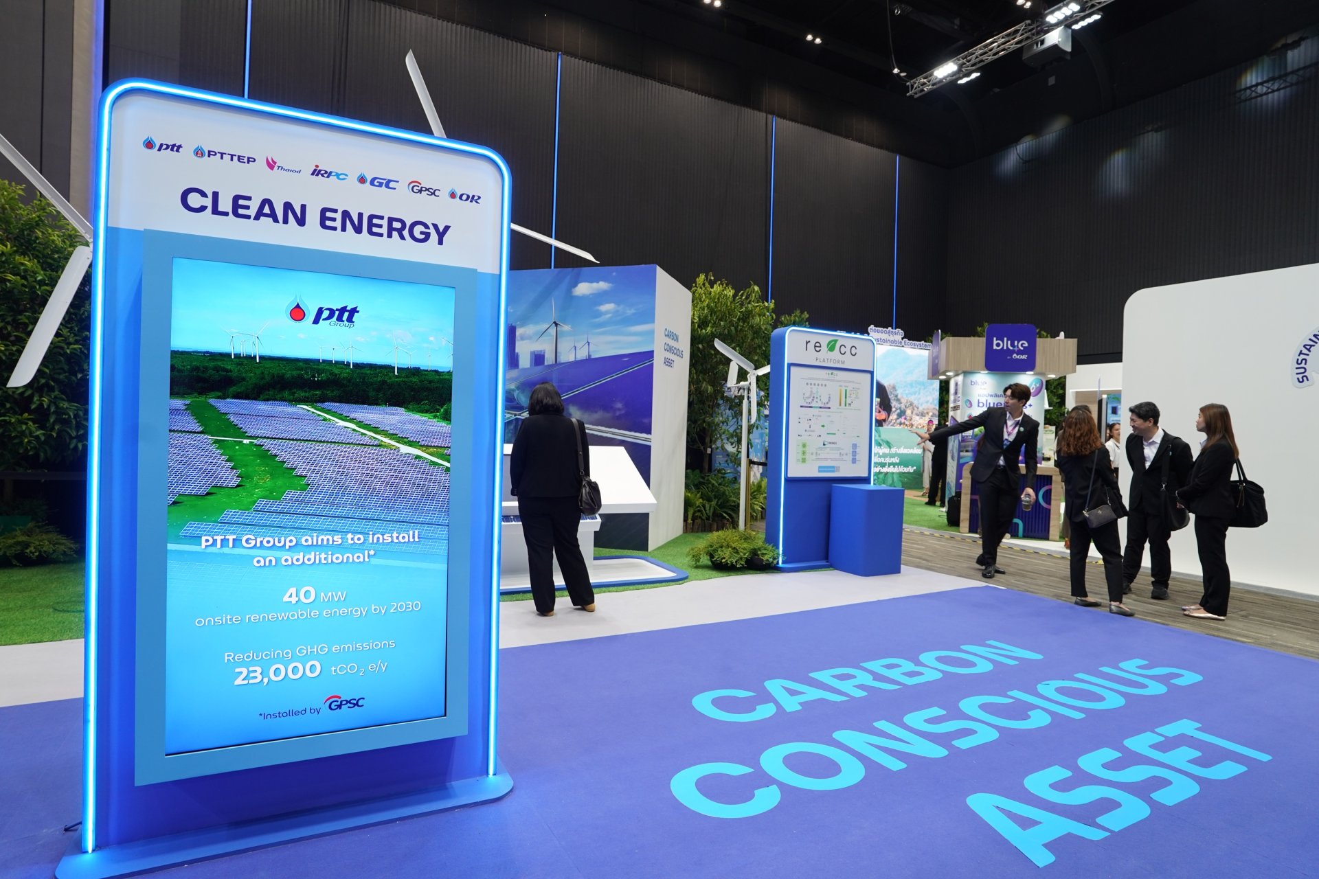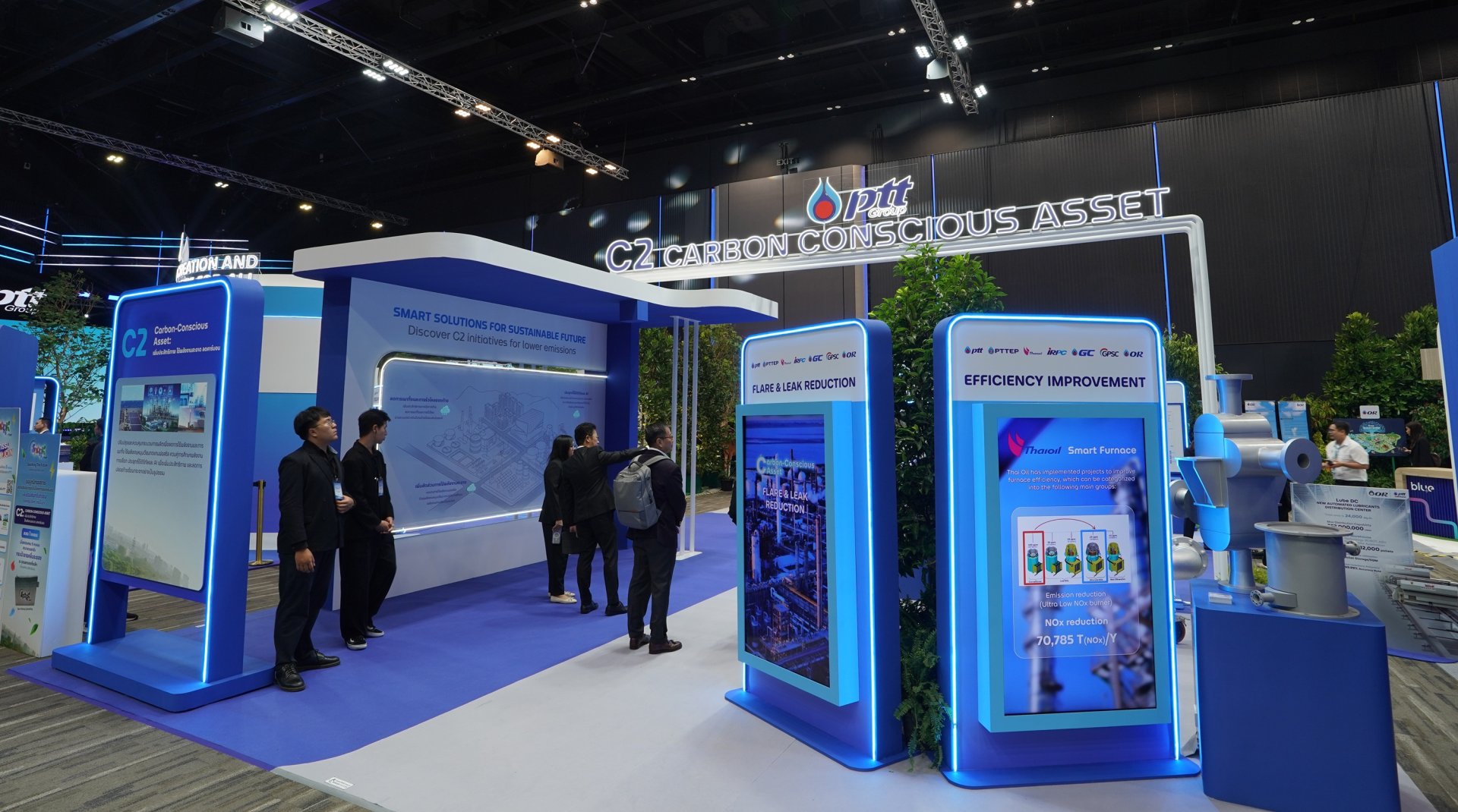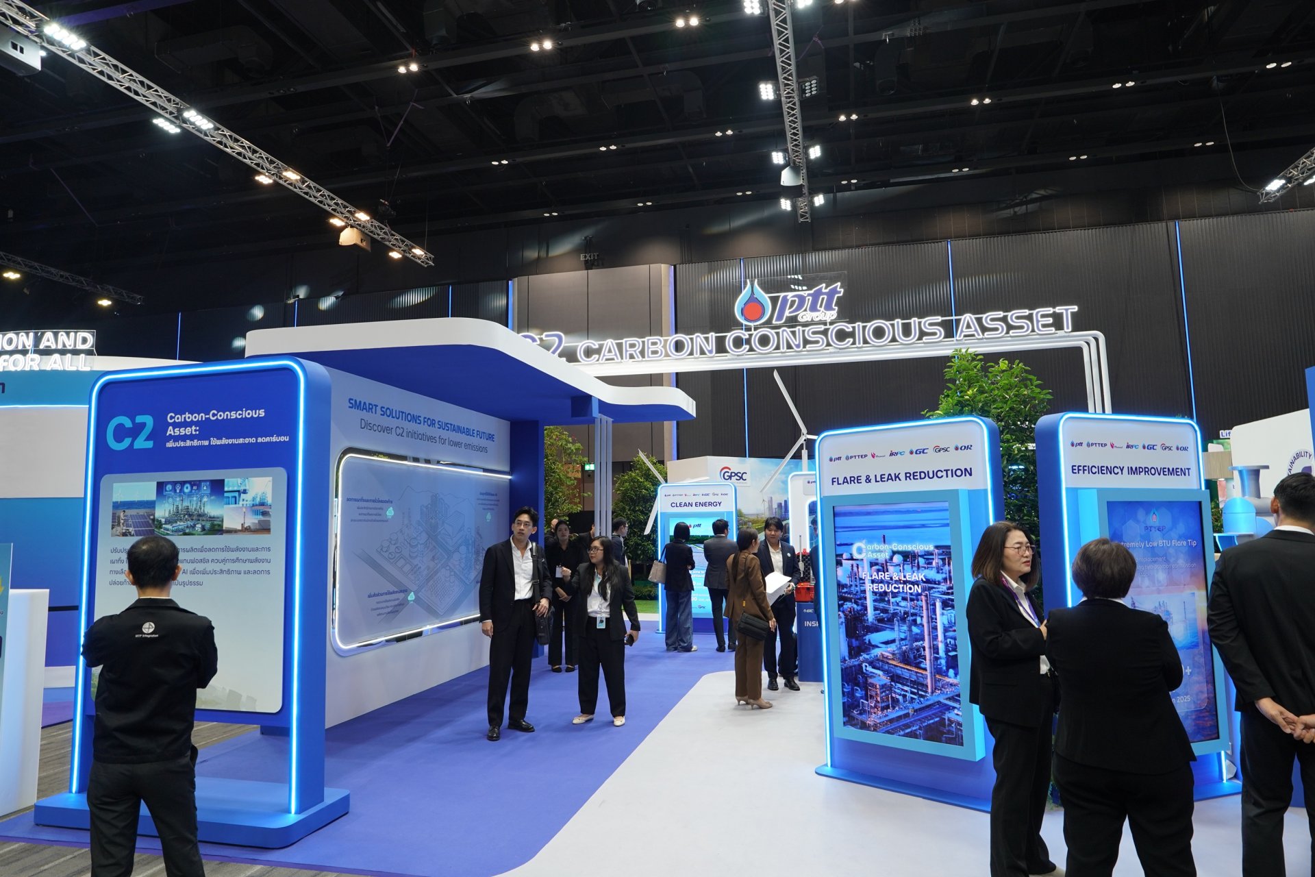 2) บูธนิทรรศการ ถ่ายทอดการดำเนินงานจริงของกลุ่ม ปตท. ที่มุ่งเน้นการสร้างความมั่นคงทางพลังงานและการเติบโตอย่างยั่งยืน พร้อมลดการปล่อยก๊าซเรือนกระจกอย่างสมดุล ผ่านการลงทุนในพลังงานและผลิตภัณฑ์คาร์บอนต่ำ การขับเคลื่อนโครงการและการพัฒนาโครงสร้างพื้นฐานใหม่เพื่อช่วยลดการปล่อยก๊าซเรือนกระจกให้ภาคส่วนต่างๆ ของประเทศไทย พร้อมด้วยกิจกรรมร่วมสนุกของกลุ่ม ปตท. อาทิ Harumiki Immersive Zone บอกเล่าเรื่องราวการเติบโตของสตรอว์เบอร์รี Harumiki และไม้เมืองหนาวจากพลังความเย็นจาก LNG รวมไปถึง Plastic Funtastic by GC เปลี่ยนพลาสติกใช้แล้วให้กลับมามีคุณค่าอย่างสร้างสรรค์