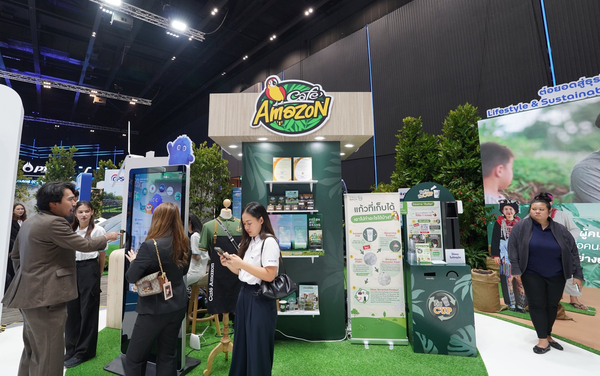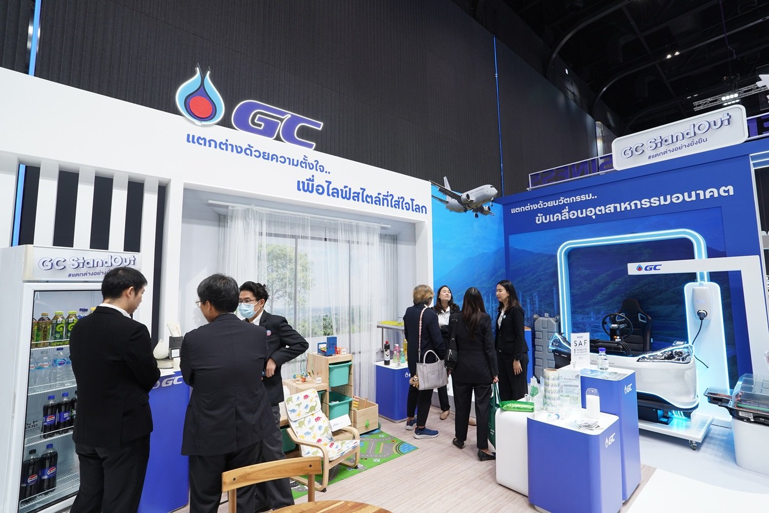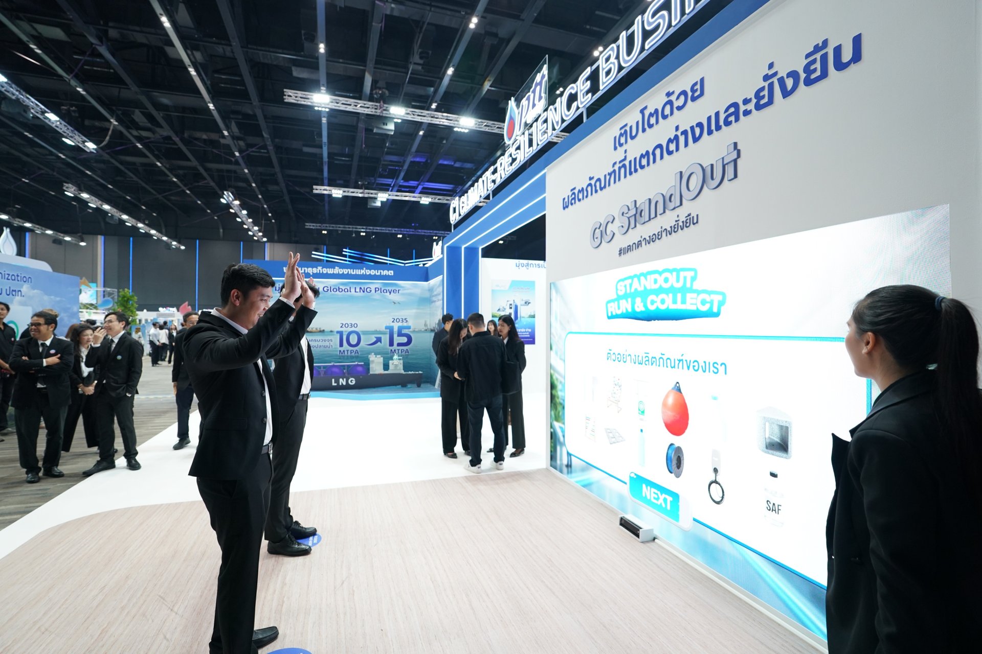 2) บูธนิทรรศการ ถ่ายทอดการดำเนินงานจริงของกลุ่ม ปตท. ที่มุ่งเน้นการสร้างความมั่นคงทางพลังงานและการเติบโตอย่างยั่งยืน พร้อมลดการปล่อยก๊าซเรือนกระจกอย่างสมดุล ผ่านการลงทุนในพลังงานและผลิตภัณฑ์คาร์บอนต่ำ การขับเคลื่อนโครงการและการพัฒนาโครงสร้างพื้นฐานใหม่เพื่อช่วยลดการปล่อยก๊าซเรือนกระจกให้ภาคส่วนต่างๆ ของประเทศไทย พร้อมด้วยกิจกรรมร่วมสนุกของกลุ่ม ปตท. อาทิ Harumiki Immersive Zone บอกเล่าเรื่องราวการเติบโตของสตรอว์เบอร์รี Harumiki และไม้เมืองหนาวจากพลังความเย็นจาก LNG รวมไปถึง Plastic Funtastic by GC เปลี่ยนพลาสติกใช้แล้วให้กลับมามีคุณค่าอย่างสร้างสรรค์