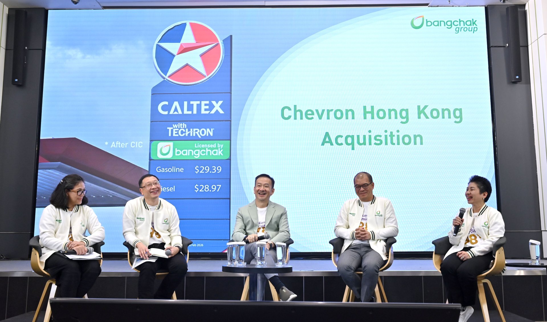 สำหรับการเข้าซื้อหุ้นใน CHK ในสัดส่วน 100% จาก Chevron Companies (Greater China) Limited มูลค่าการลงทุนเบื้องต้น 270 ล้านดอลลาร์สหรัฐฯ เป็นการขยายการลงทุนไปยังตลาดพลังงานในภูมิภาคเอเชียแปซิฟิก ถือเป็นก้าวสำคัญทั้งในการขยายธุรกิจต่างประเทศ การเพิ่มศักยภาพการแข่งขัน และสร้างความแข็งแกร่งให้ระบบโลจิสติกส์พลังงาน โดย CHK มีธุรกิจน้ำมันค้าปลีก น้ำมันอุตสาหกรรม น้ำมันเรือเดินสมุทร คลังน้ำมัน และสถานีบริการทั่วฮ่องกง ซึ่งภายหลังเข้าซื้อบางจากจะยังคงดำเนินงานภายใต้แบรนด์ Caltex ภายใต้สัญญาเครื่องหมายการค้า การลงทุนนี้สอดคล้องกับยุทธศาสตร์ “Accelerating Bangchak 100x” เพื่อขับเคลื่อนการเติบโตและเพิ่มโอกาสทางธุรกิจระยะยาว คาดว่าธุรกรรมดังกล่าวจะแล้วเสร็จภายในกลางปี 2569 ทั้งนี้ภายหลังการเข้าซื้อ บริษัทจะเปลี่ยนชื่อเป็น “Bangchak Hong Kong Limited” โดยในระยะแรกบางจากฯได้รับสิทธิ์ใช้แบรนด์ Caltex จากผู้ขาย จากนั้นจะทยอยเปลี่ยนแบรนด์ภายใน 5 ปี