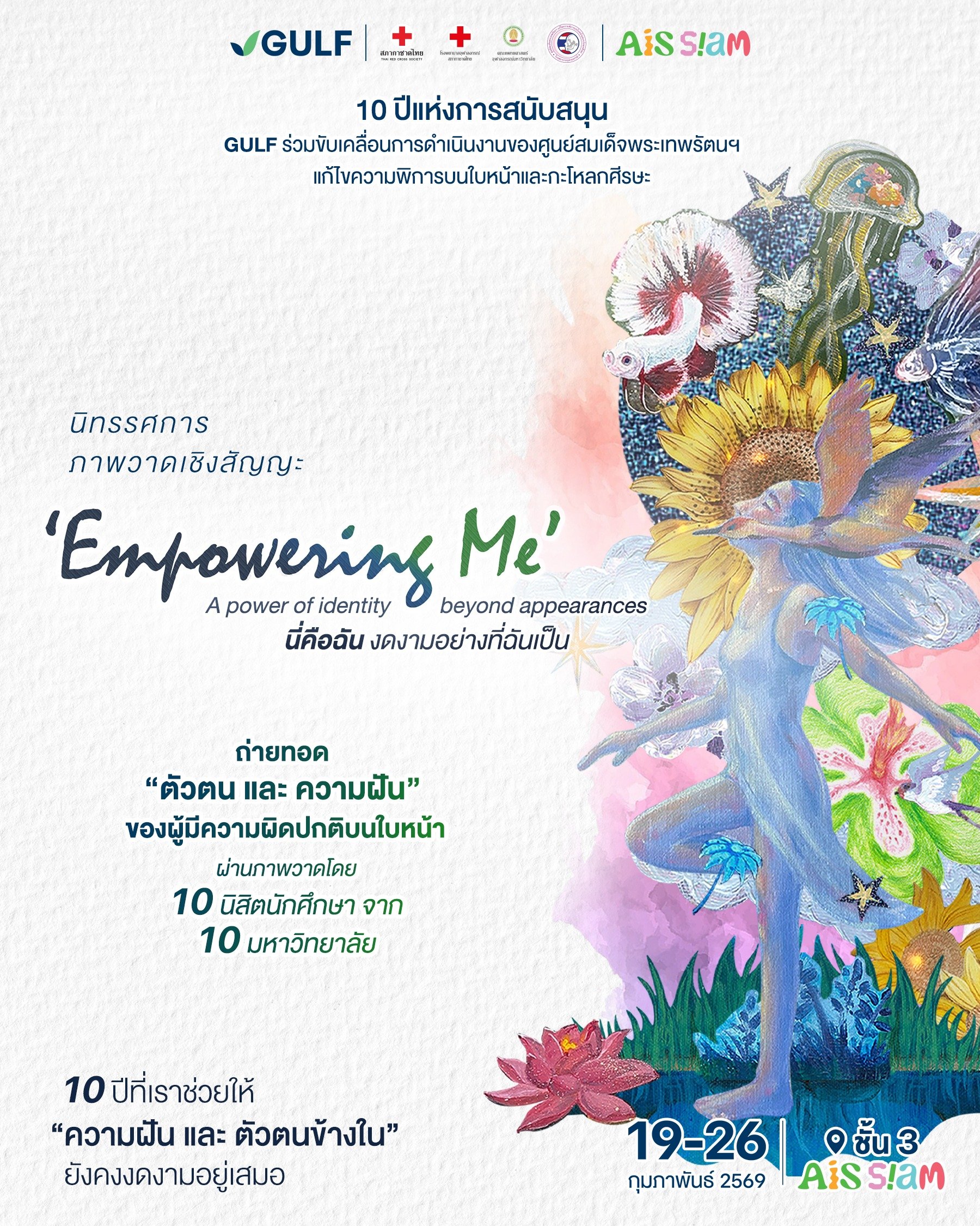 บริษัท กัลฟ์ ดีเวลลอปเมนท์ จำกัด (มหาชน) หรือ GULF สานต่อภารกิจเพื่อสังคมภายใต้แนวคิด “Powering the Future, Empowering the People” มอบเงินสนับสนุนการดำเนินงานของ ศูนย์สมเด็จพระเทพรัตนฯ โรงพยาบาลจุฬาลงกรณ์ สภากาชาดไทย ต่อเนื่องเป็นที่ 10 พร้อมมอบทุนการศึกษาภายใต้โครงการ “หนึ่งทุน หนึ่งฝัน ปั้นอนาคต” ให้แก่เยาวชนที่อยู่ในความดูแลของศูนย์สมเด็จพระเทพรัตนฯ เพื่อสร้างโอกาสทำตามความฝันของน้อง ๆ ที่ครอบครัวมีรายได้น้อย ให้ได้เข้ารับการศึกษาในระดับสูงสุดตามความมุ่งหวังของครอบครัวและตามศักยภาพทางสติปัญญาและร่างกาย นอกจากนี้ ในวาระครบรอบ 10 ปีที่ GULF ร่วมขับเคลื่อนการดำเนินงานของศูนย์สมเด็จพระเทพรัตนฯ มาอย่างต่อเนื่อง GULF ยังได้จัดนิทรรศการภาพวาดเชิงสัญญะ (Symbolism Art) “Empowering Me – A power of identity beyond appearances: นี่คือฉัน งดงามอย่างที่ฉันเป็น” รวบรวมผลงานจาก 10 ศิลปินรุ่นใหม่จาก 10 มหาวิทยาลัยทั่วประเทศ เพื่อถ่ายทอดเรื่องราวความฝัน ความเข้มแข็ง และตัวตนที่แท้จริงของผู้มีความผิดปกติบนใบหน้า โดยนิทรรศการเปิดให้เข้าชมฟรีตลอดงาน ระหว่างวันที่ 19 – 26 กุมภาพันธ์ 2569 ณ ชั้น 3 AIS SIAM สยามแควร์
