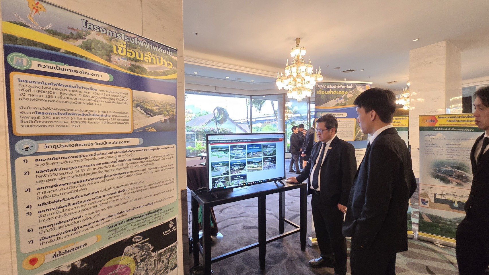 การไฟฟ้าฝ่ายผลิตแห่งประเทศไทย (กฟผ.) ลงนาม 3 บันทึกข้อตกลงกับกรมชลประทาน ได้แก่ 1) โครงการโรงไฟฟ้าพลังน้ำท้ายเขื่อนชลประทาน เขื่อนลำปาว (จ.กาฬสินธุ์) เขื่อนลำตะคอง (จ.นครราชสีมา) เขื่อนกระเสียว (จ.สุพรรณบุรี) และเขื่อนห้วยแม่ท้อ (จ.ตาก) 2) โครงการโรงไฟฟ้าพลังน้ำท้ายเขื่อนชลประทาน เขื่อนแก่งกระจาน (จ.เพชรบุรี) และเขื่อนแม่งัดสมบูรณ์ชล (จ.เชียงใหม่) และ 3) โครงการวิจัยและพัฒนาการบริหารจัดการน้ำ โดยมี นายนรินทร์ เผ่าวณิช ผู้ว่าการ กฟผ. และนายสุริยพล นุชอนงค์ อธิบดีกรมชลประทาน เป็นตัวแทนลงนาม พร้อมด้วย นายวิภู พิวัฒน์ รองผู้ว่าการผลิตไฟฟ้า นายศิริวัฒน์ เจ็ดสี รองผู้ว่าการพัฒนาโรงไฟฟ้าและพลังงานหมุนเวียน กฟผ. และนายเดช เล็กวิชัย รองอธิบดีฝ่ายบำรุงรักษา กรมชลประทาน ร่วมเป็นสักขีพยาน ณ โรงแรมเซ็นทารา แกรนด์ เซ็นทรัลพลาซ่า ลาดพร้าว กรุงเทพฯ