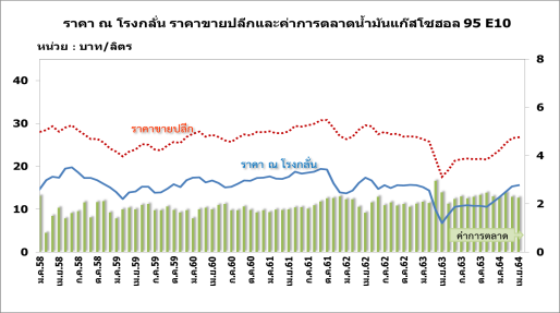ค่าเงินบาทของไทยอ่อนค่าลงจากสัปดาห์ที่แล้ว 0.20 บาท/เหรียญสหรัฐฯ มาอยู่ที่ระดับเฉลี่ย 31.5872 บาท/เหรียญสหรัฐฯ ต้นทุนน้ำมันเบนซินเพิ่มขึ้น 0.01 บาท/ลิตร ขณะที่ต้นทุนน้ำมันดีเซลเพิ่มขึ้น 0.17 บาท/ลิตร ทำให้ค่าการตลาดของน้ำมันเบนซิน น้ำมันแก๊สโซฮอล์ และน้ำมันดีเซล เฉลี่ยอยู่ที่ระดับ 2.22 บาท/ลิตร