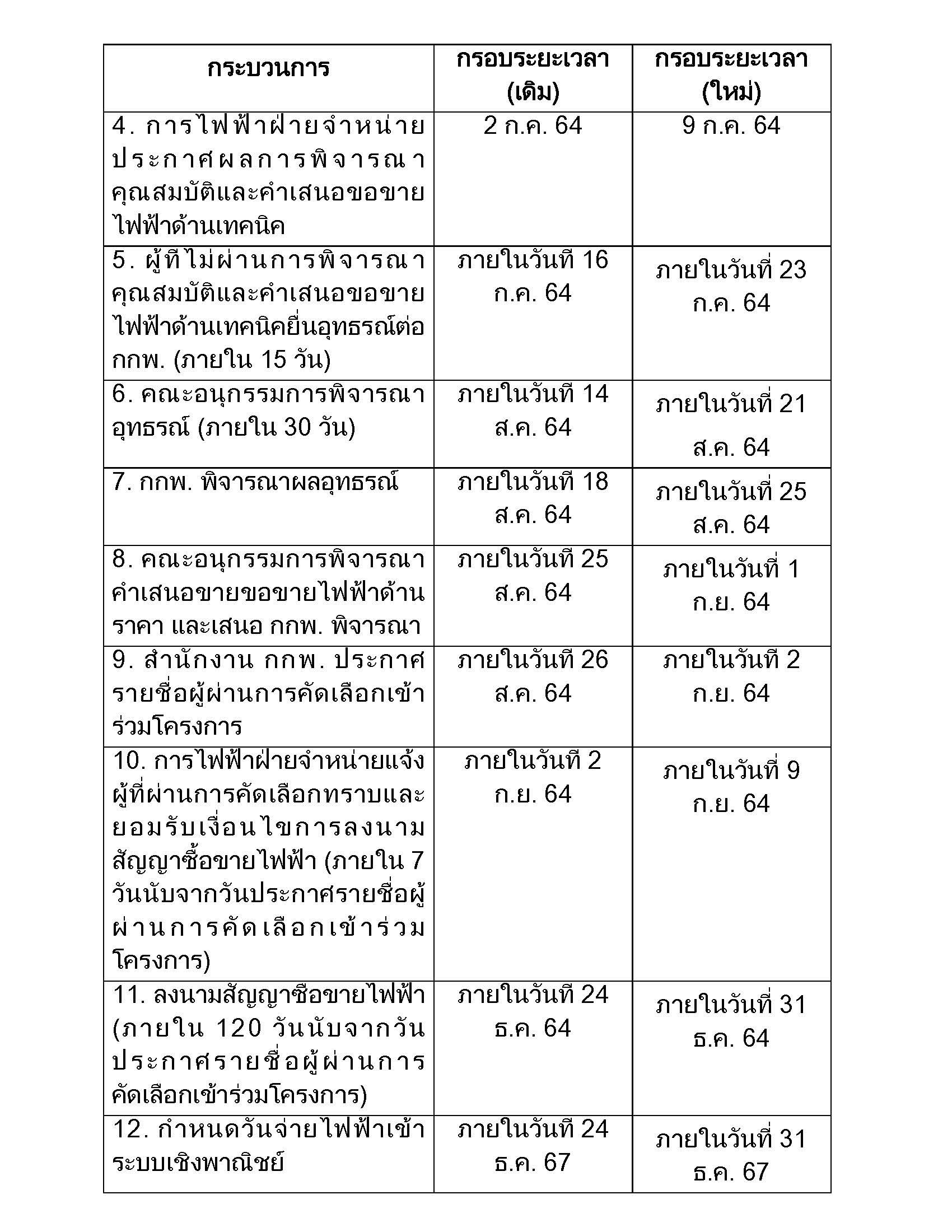 สำหรับ มติ กกพ. ที่พิจารณาเห็นชอบกรอบระยะเวลาในการดำเนินการโครงการใหม่ ประกอบด้วย