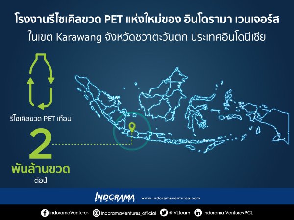 บริษัท อินโดรามา เวนเจอร์ส จำกัด (มหาชน) หรือไอวีแอล ผู้ผลิต PET รีไซเคิลสำหรับบรรจุภัณฑ์เครื่องดื่มรายใหญ่ที่สุดของโลก ประกาศสร้างโรงงานแห่งใหม่ในเขต Karawang จังหวัดชวาตะวันตก ซึ่งจะรีไซเคิลขวดพลาสติกได้เกือบ 2 พันล้านขวดต่อปี เพื่อสนับสนุนแผนลดขยะในมหาสมุทรของรัฐบาลประเทศอินโดนีเซีย