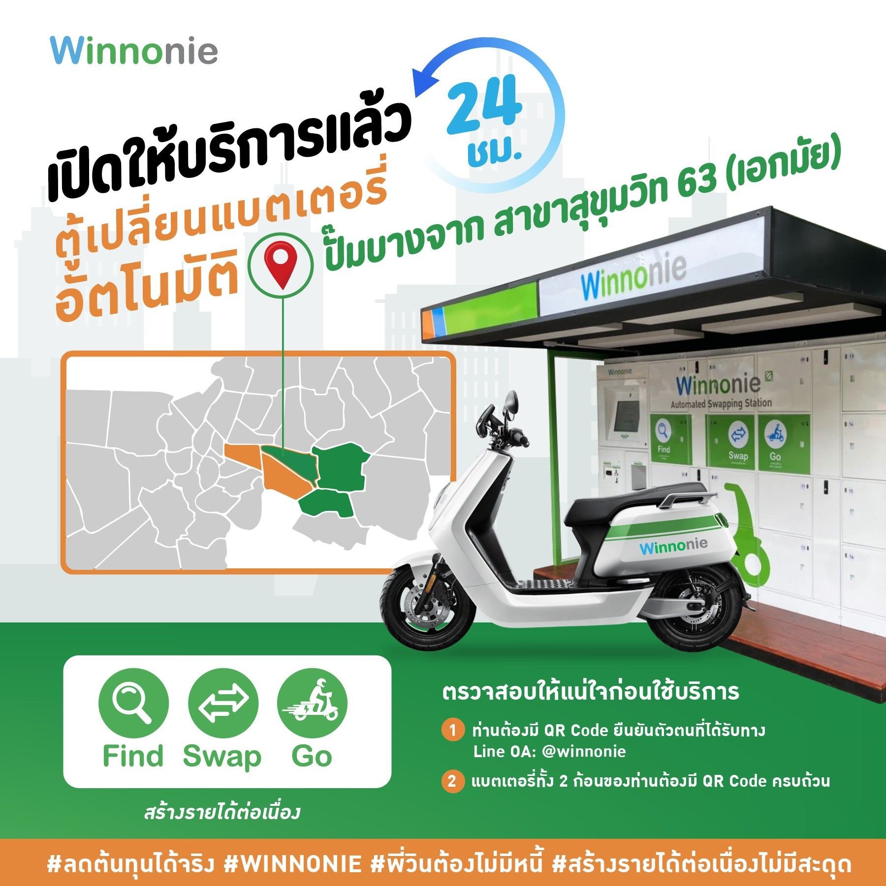 Winnonie ให้บริการตู้เปลี่ยนแบตเตอรี่อัตโนมัติในปั๊มบางจากฯ
